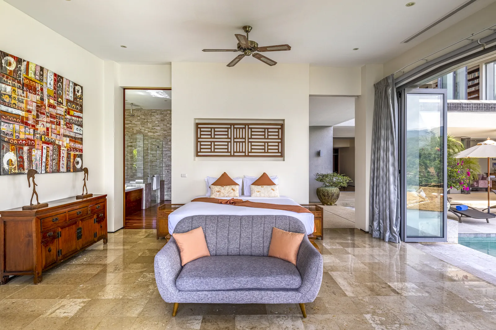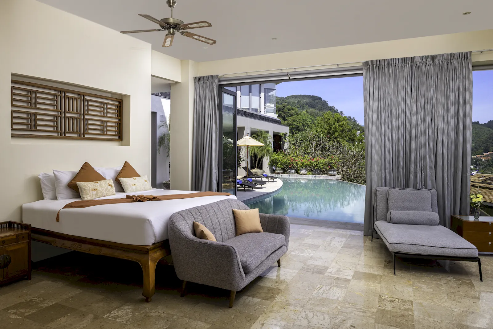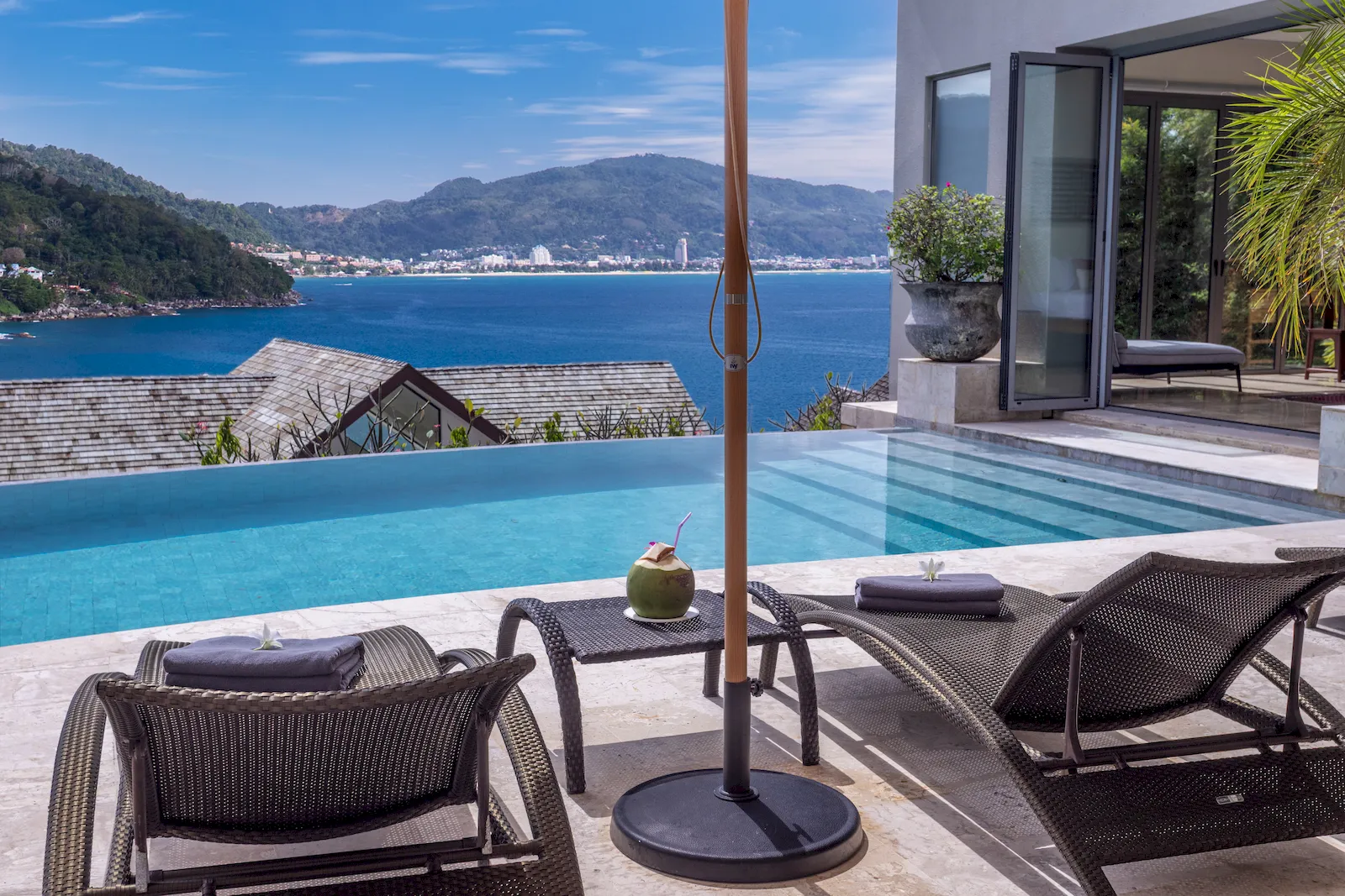 Positioned within one of Phuket’s most exclusive gated enclaves, the villa offers a rare balance of serenity and convenience. The coastal setting provides remarkable privacy while remaining only minutes from Kamala Beach, Patong’s dining and entertainment, boutique retail, and west-coast attractions. Proximity to international lifestyle venues, wellness centres, and golf courses further enhances its appeal as a luxury villa Phuket rental. This prime headland location continues to be one of the island’s most coveted destinations for discerning travellers seeking comfort and seclusion.