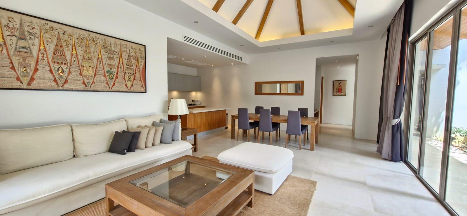 Thoughtfully designed for relaxed island living, the villa features an open-plan layout with bright living and dining areas that flow seamlessly to the outdoor terrace and pool. High-quality materials, modern finishes, and a fully equipped Western kitchen elevate the home’s contemporary tropical aesthetic. Both bedrooms are generously sized with ensuite bathrooms, creating a comfortable and private residential sanctuary suited for long-term stays.