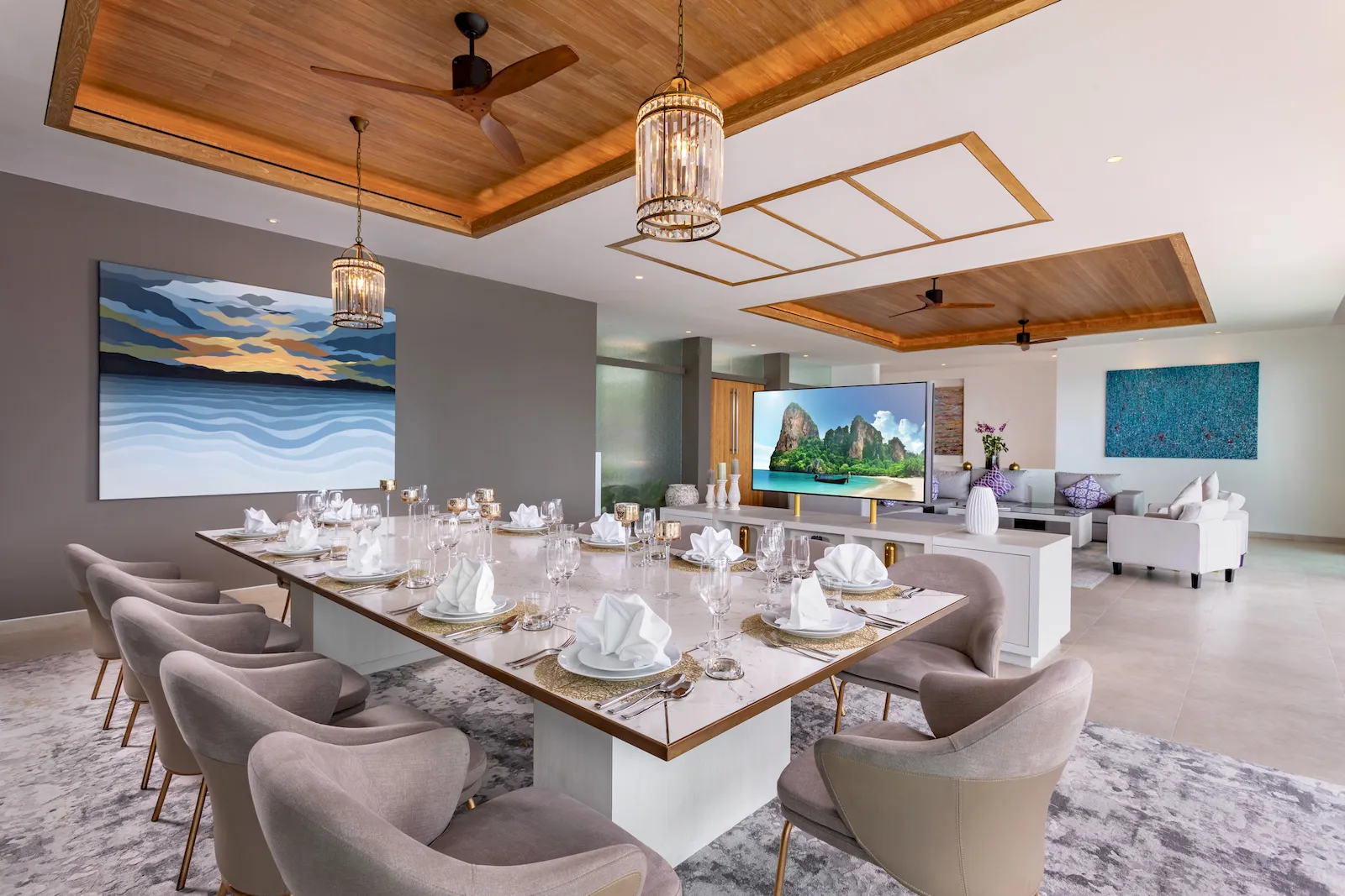 Designed for both relaxation and recreation, the villa features a lower-level entertainment lounge, a private gym with natural light, and expansive terraces ideal for sunrise and sunset enjoyment. A mahjong table, outdoor sala, and alfresco dining areas provide inviting spaces for social gatherings, while the bunk room offers a playful environment for children. Supported by dedicated villa staff, a private chef, daily housekeeping, and included transfers, the property offers a seamless luxury experience. Its modern amenities, family-friendly layout, and panoramic coastal views give it strong appeal in the premium rental market for group holidays and retreat-style stays.