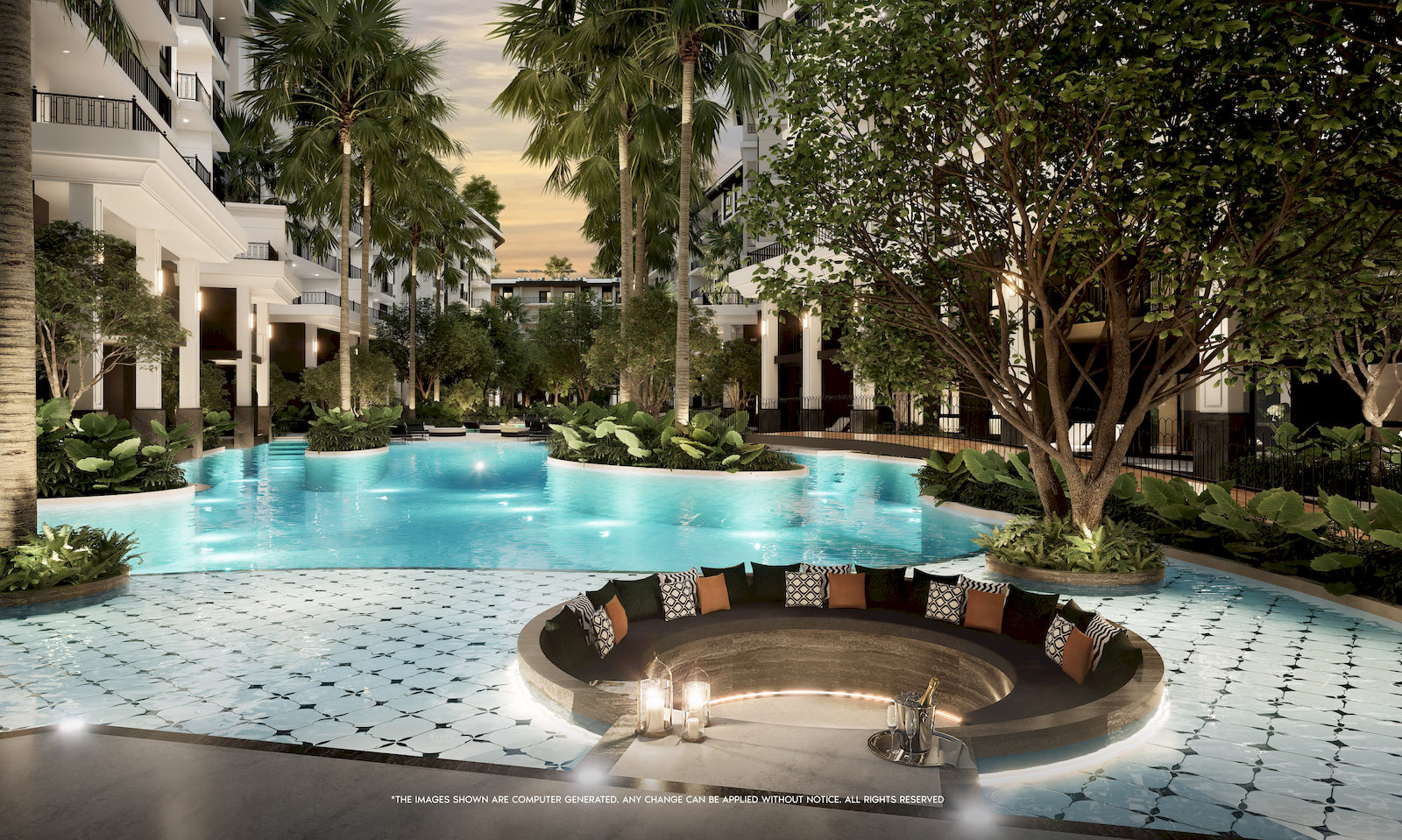 The development is conceived as a multi-dimensional resort environment, integrating wellness, leisure, and social spaces throughout the property.