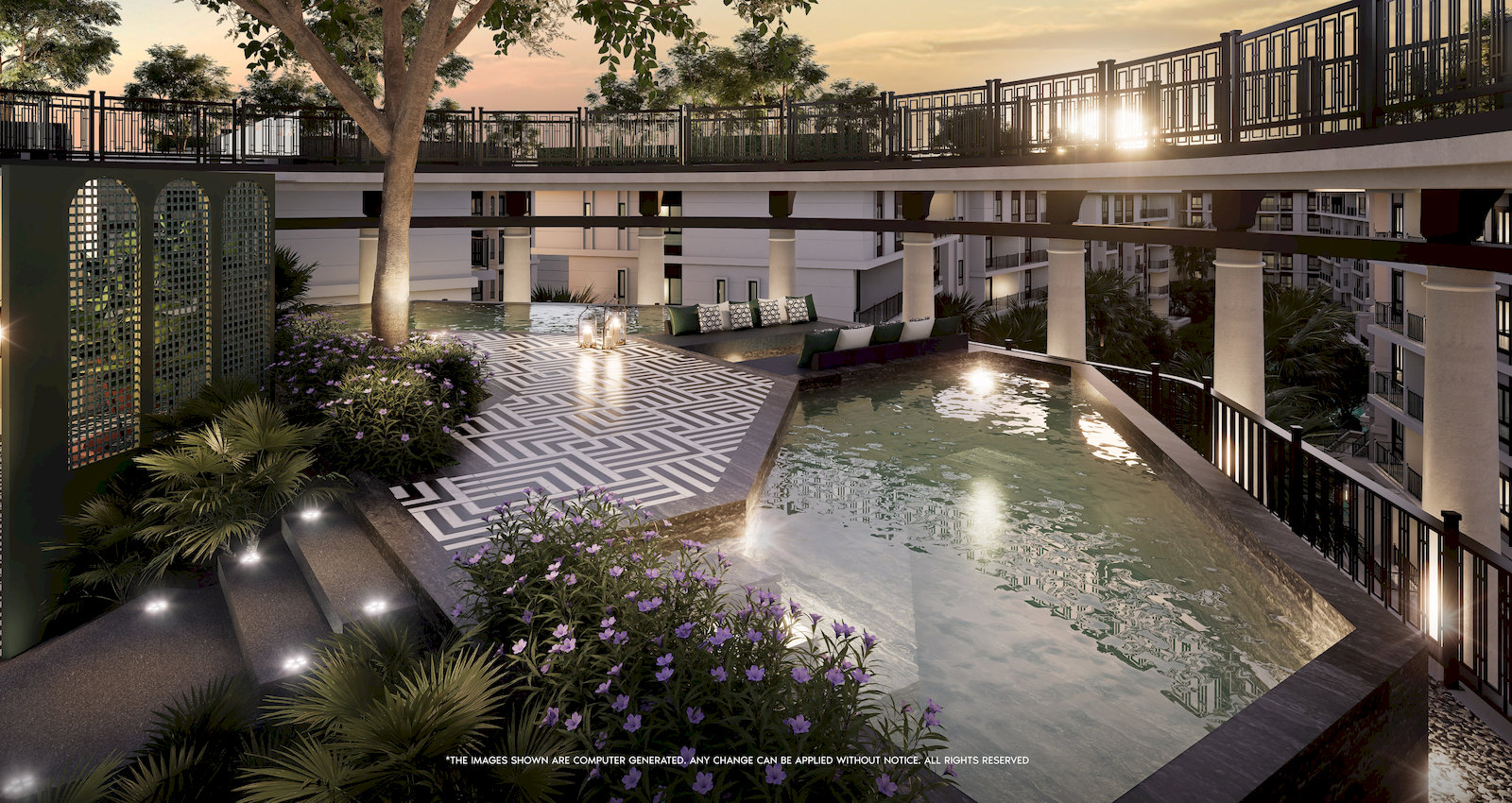 A fully equipped fitness center and yoga deck support active living, complemented by co-working spaces and a business lounge for remote professionals. Entertainment facilities—including a home theater, game arcade, and kid’s zone—are seamlessly integrated, while landscaped areas, an edible garden, and BBQ zones enhance the sense of community.