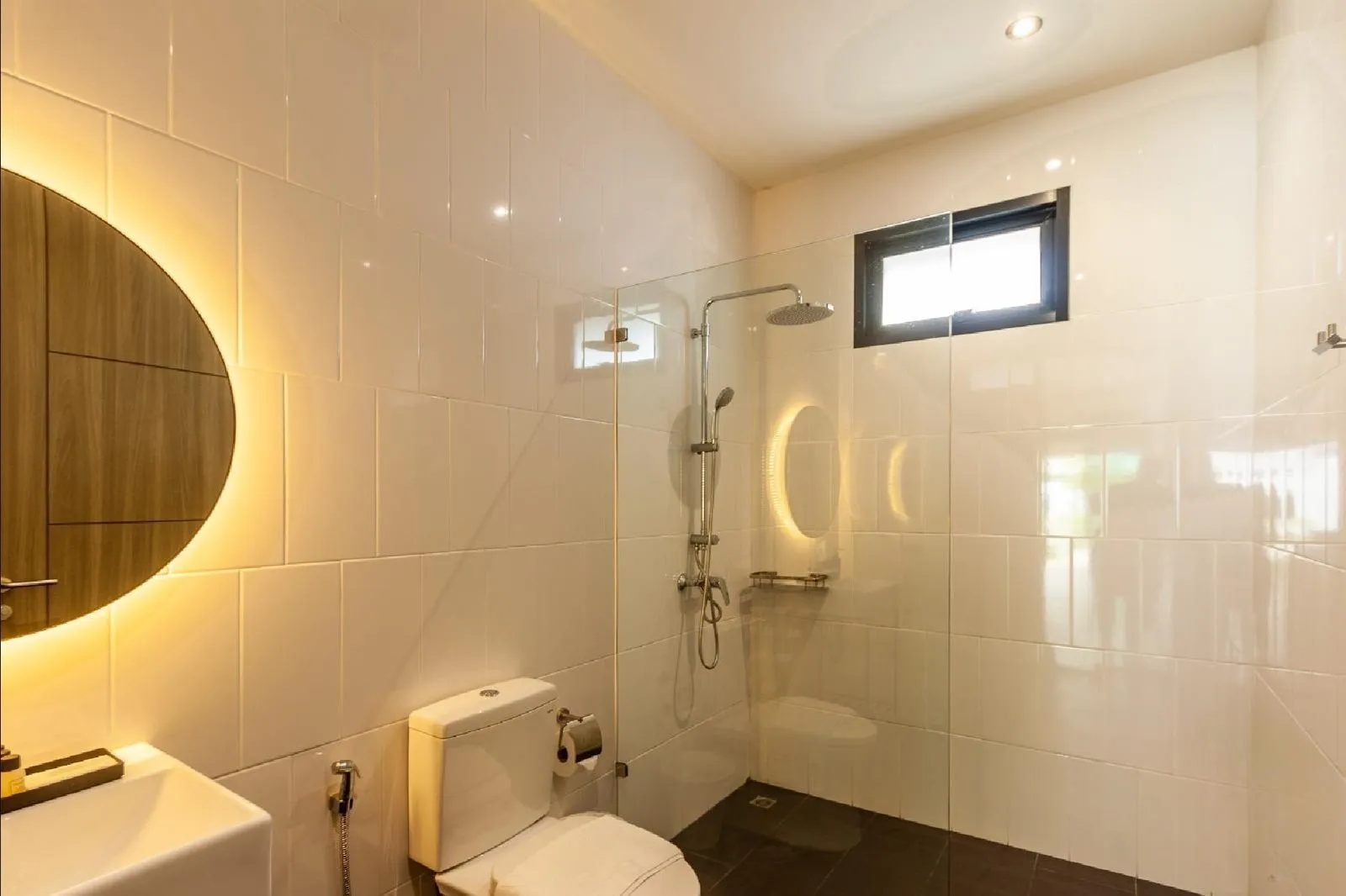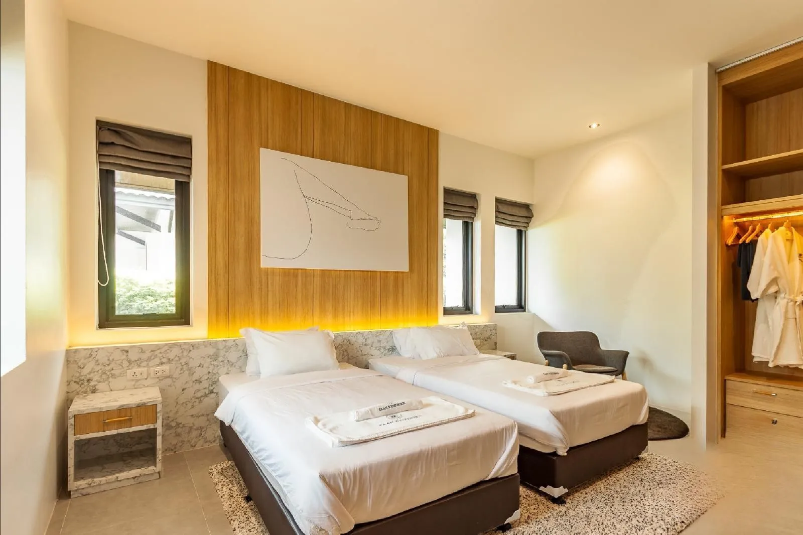 The villa embraces a contemporary tropical aesthetic, with open-plan living and dining areas designed to invite natural light and provide seamless access to the outdoor terrace. Modern furnishings, warm materials, and thoughtful design details contribute to a serene and stylish atmosphere ideal for long-term living. With two spacious bedrooms and an impressive five bathrooms, the home offers comfort and convenience for couples, small families, or remote professionals seeking privacy and functionality.