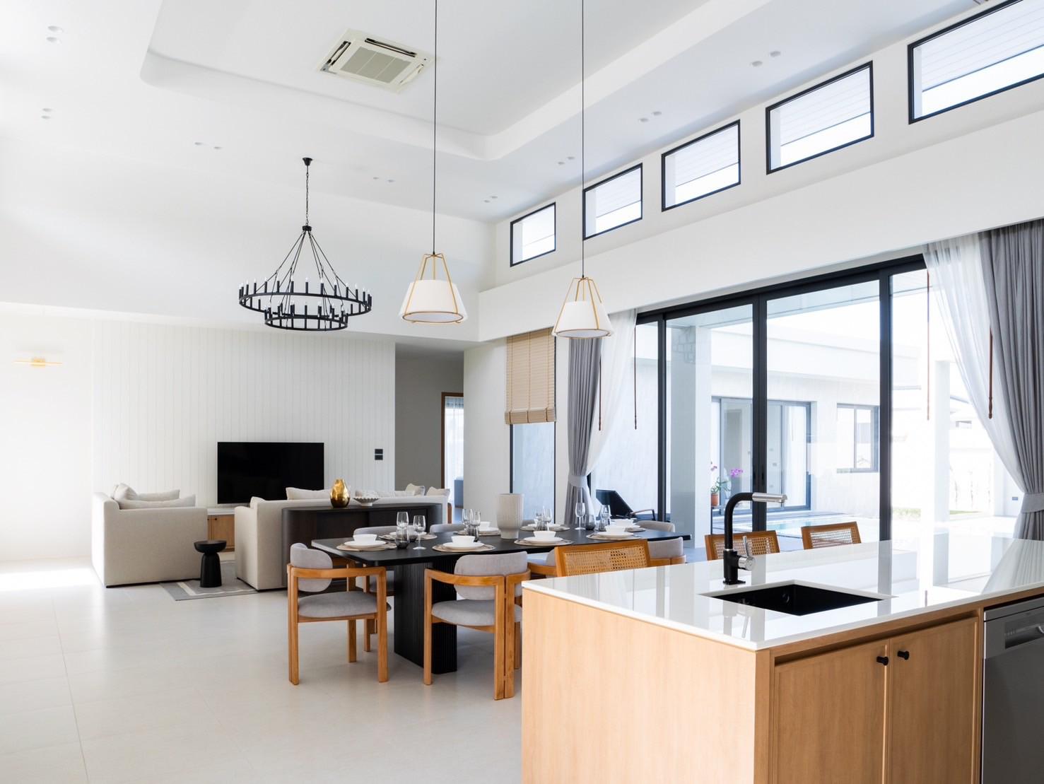 Crafted with attention to detail, the villa features spacious open-plan interiors, floor-to-ceiling openings, and a strong connection to the outdoor pool terrace. High-quality furnishings, a fully equipped kitchen, and a well-appointed laundry room enhance daily convenience and comfort. All four bedrooms come with ensuite bathrooms, while the elegant living and dining areas are designed for both relaxation and entertaining. The private 4 x 9.9-meter swimming pool anchors the villa’s tropical layout, creating an inviting environment for year-round enjoyment.