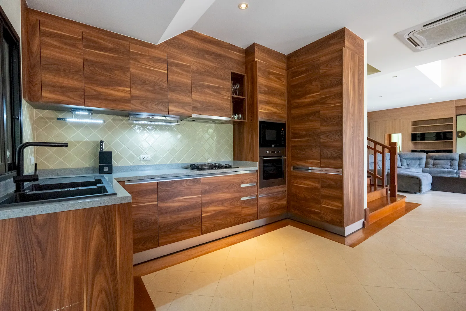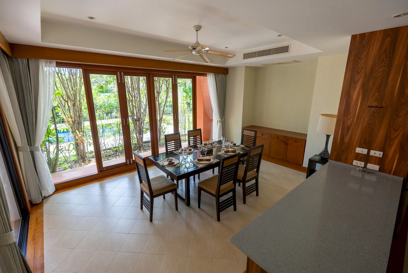 The villa showcases an inviting modern design with expansive living and dining areas overlooking the pool and garden. Large windows and sliding doors allow abundant natural light while promoting an effortless indoor–outdoor flow. A fully equipped Western-style kitchen supports both daily living and entertaining, while all four bedrooms are well-proportioned and complemented by their own bathrooms for optimal privacy. The master suite features a walk-in wardrobe and spacious ensuite bath, creating a private retreat within the home.