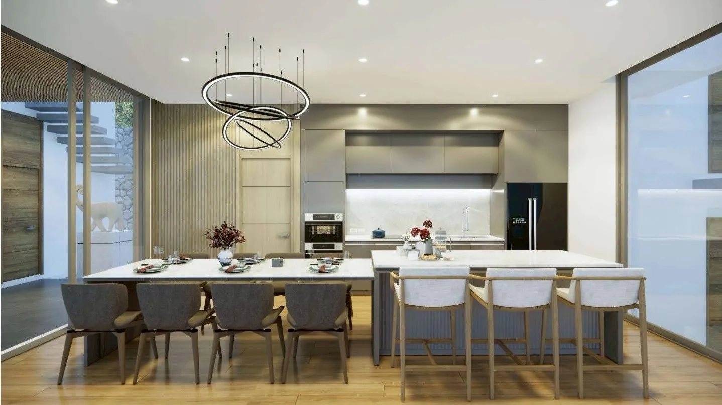 Set on a 347 sq.m land plot with a 353 sq.m built-up area, the villa features four ensuite bedrooms plus a dedicated maid’s room. The modern tropical aesthetic emphasises natural ventilation, high ceilings and seamless indoor–outdoor transitions. Generous living spaces flow toward the pool terrace, creating an inviting environment suited to long-term living, hosting guests or multi-generational use.