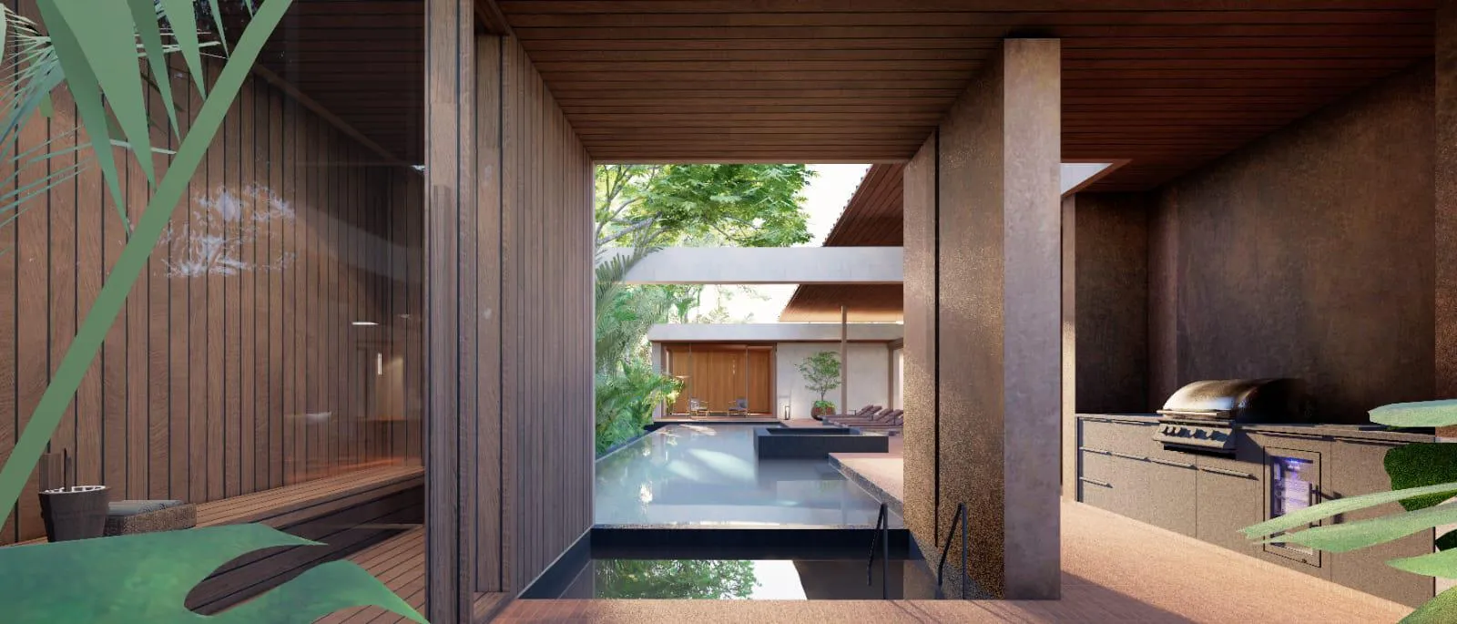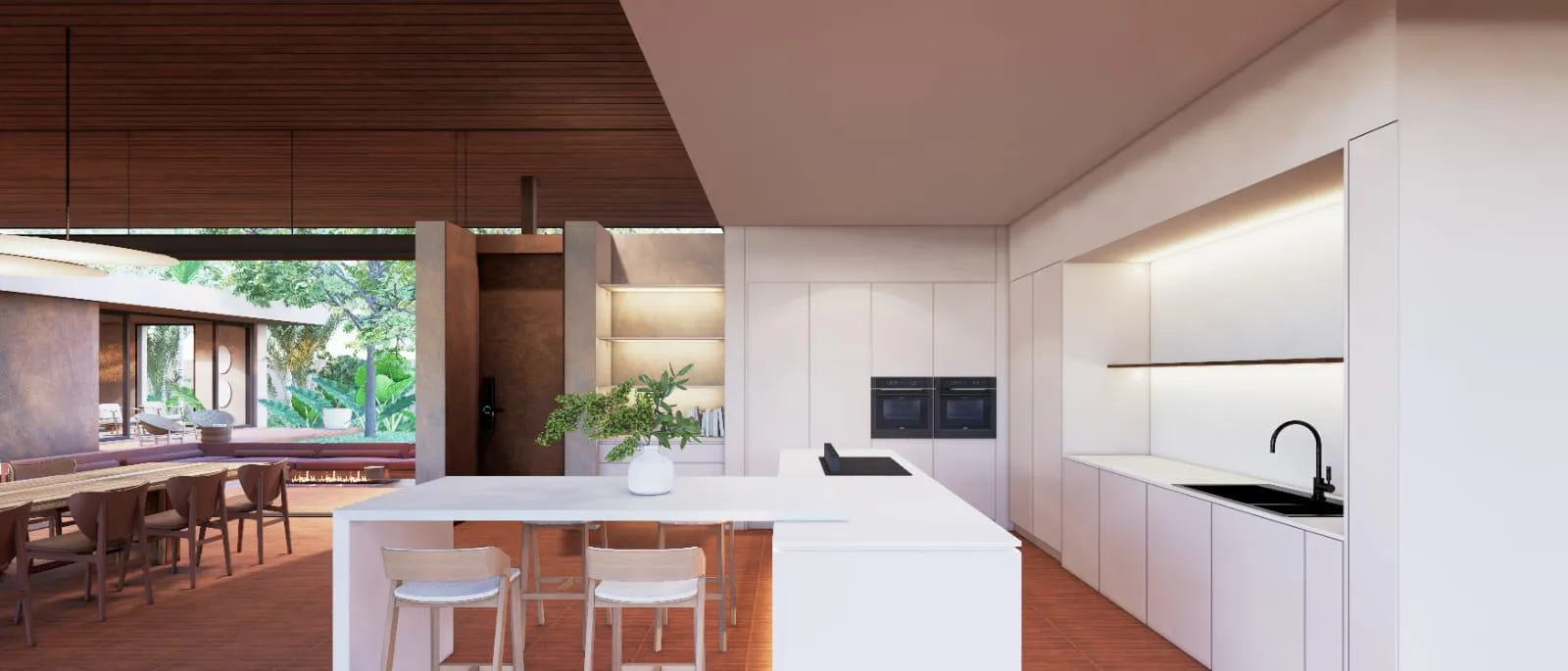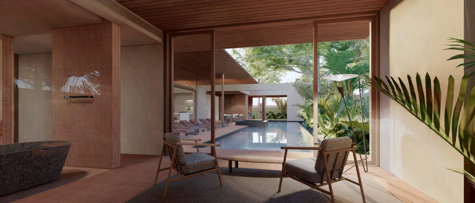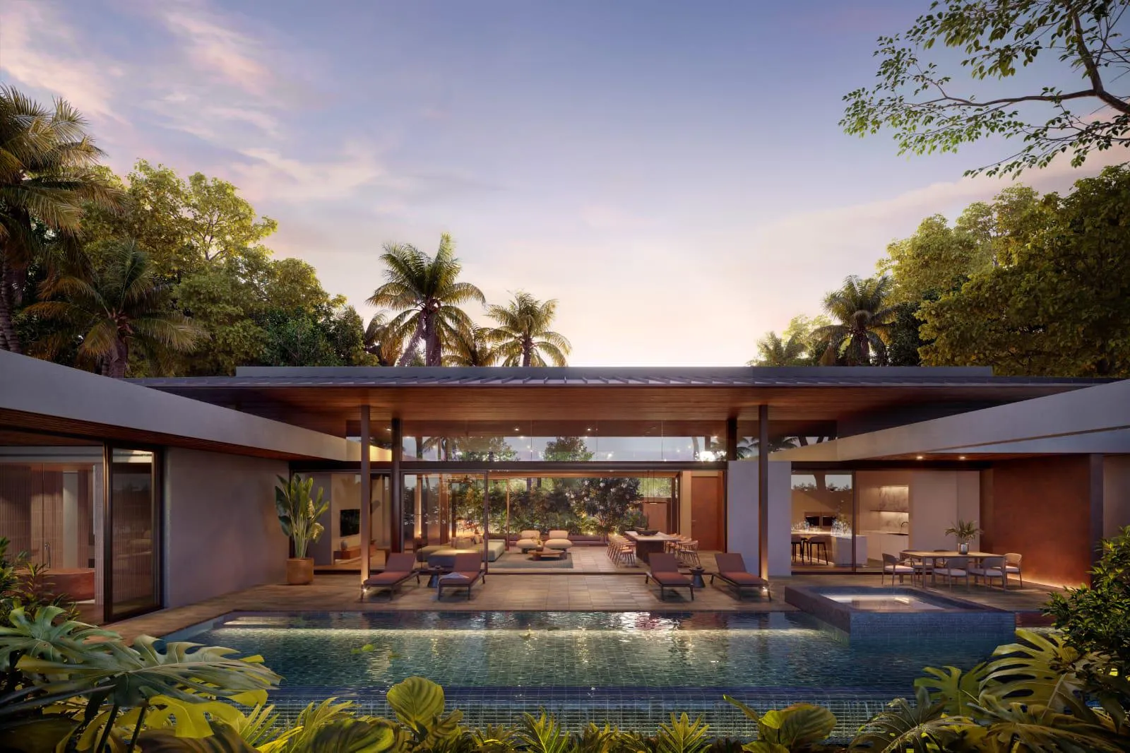 Each residence features a single-storey layout with four to five bedrooms and expansive open-plan interiors that connect seamlessly with outdoor terraces and landscaped gardens. Spa-inspired elements, including a private sauna and cold pool, complement the villa’s wellness-oriented design. Optional curated furnishing packages allow for a fully realised living environment tailored to individual preferences.