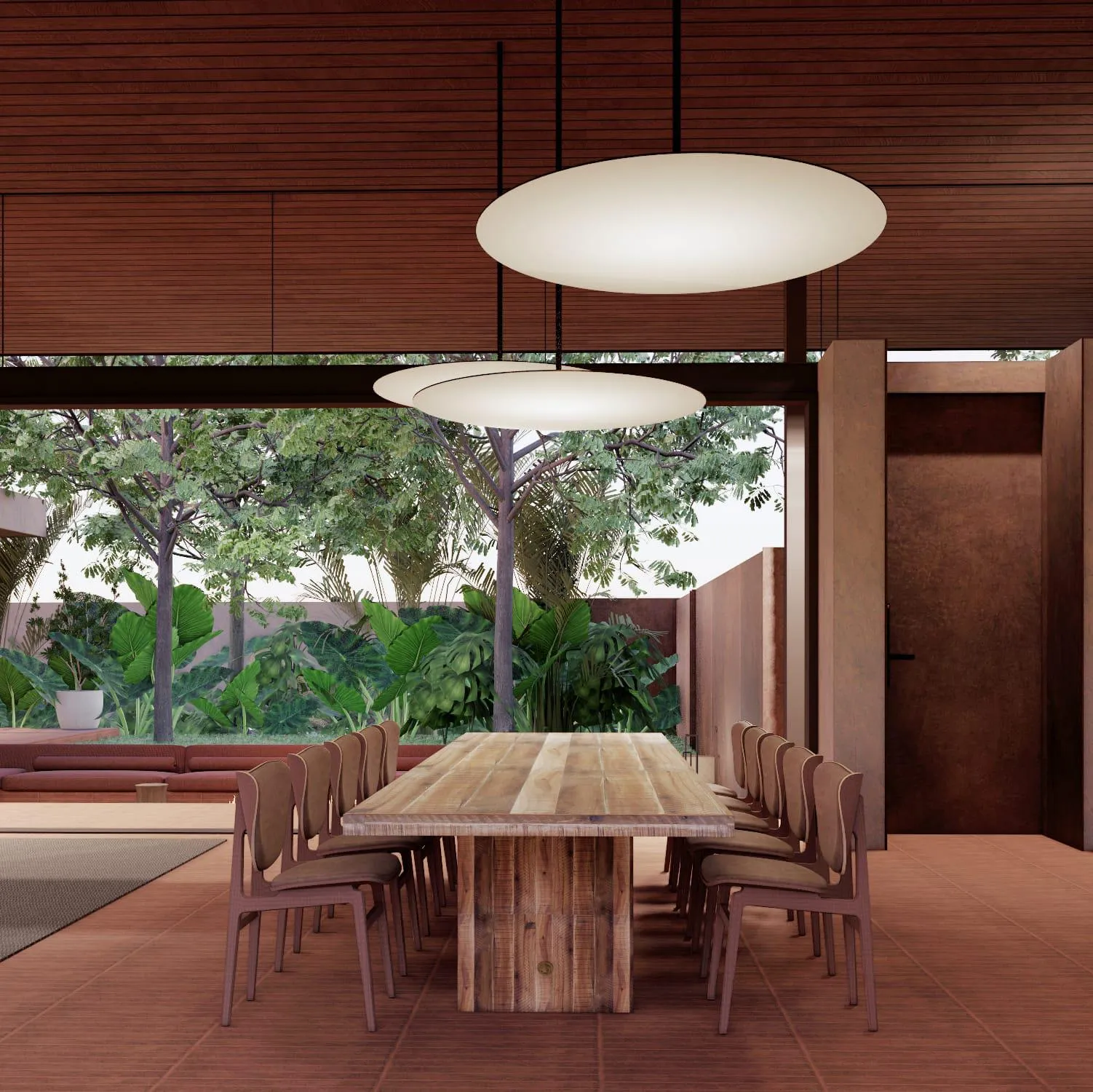 The estate spans approximately 6,833 sq.m., with villa land plots ranging from around 1,200 to 1,716 sq.m. Built-up areas extend from roughly 790 to 879 sq.m., offering generous proportions for both indoor and outdoor living. Carefully considered architectural details enhance natural ventilation, light flow, and the sense of retreat throughout the homes.