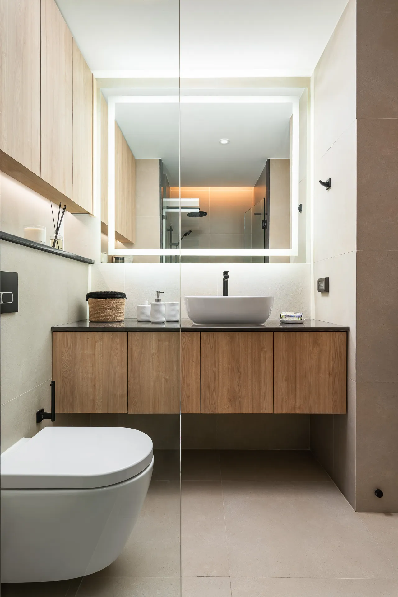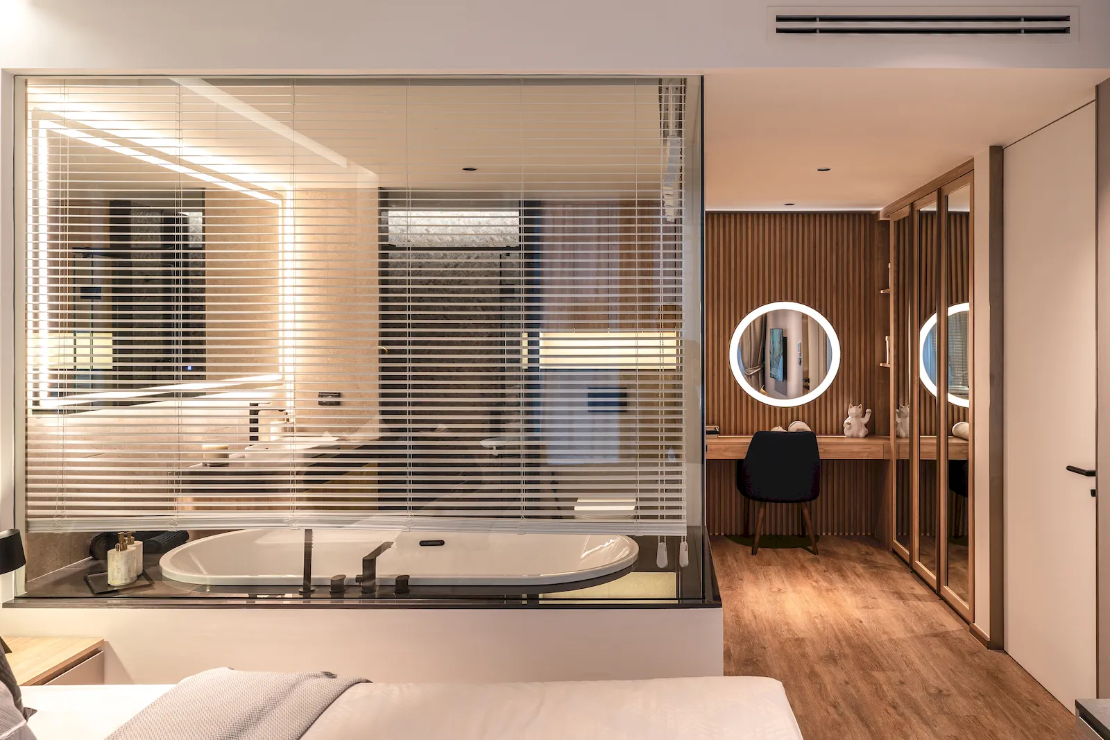 The residence sits within a modern condominium environment shaped by environmentally conscious principles, where greenery and natural light are central to the overall experience. Interiors follow a clean, contemporary aesthetic with efficient layouts, energy-saving systems, and materials chosen to enhance sustainability. The broader development incorporates landscaped spaces, walking paths, and areas designed to support a calm, resort-like atmosphere.