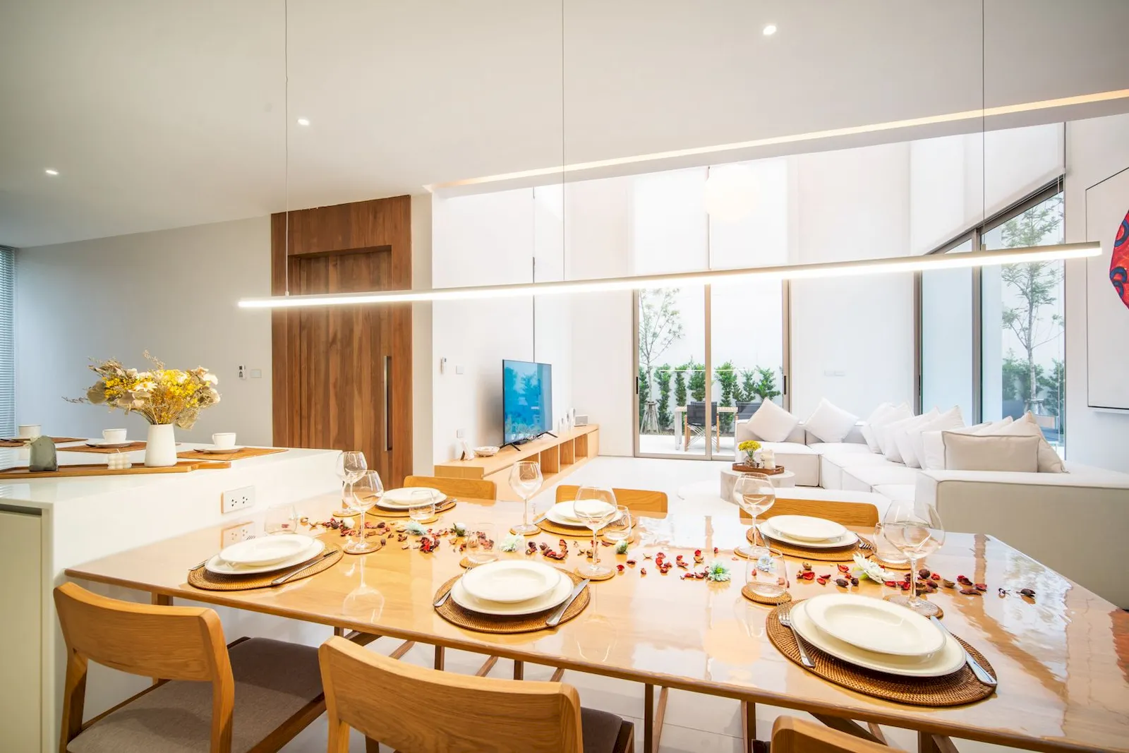 With a built-up area of 402 sq.m. on a 400 sq.m. land plot, the villa features three ensuite bedrooms, expansive indoor–outdoor living spaces, and premium furnishings throughout. Thoughtfully planned layouts deliver bright interiors, practical functionality, and a seamless connection to the outdoor pool and garden areas—making the home suitable for up to six occupants.