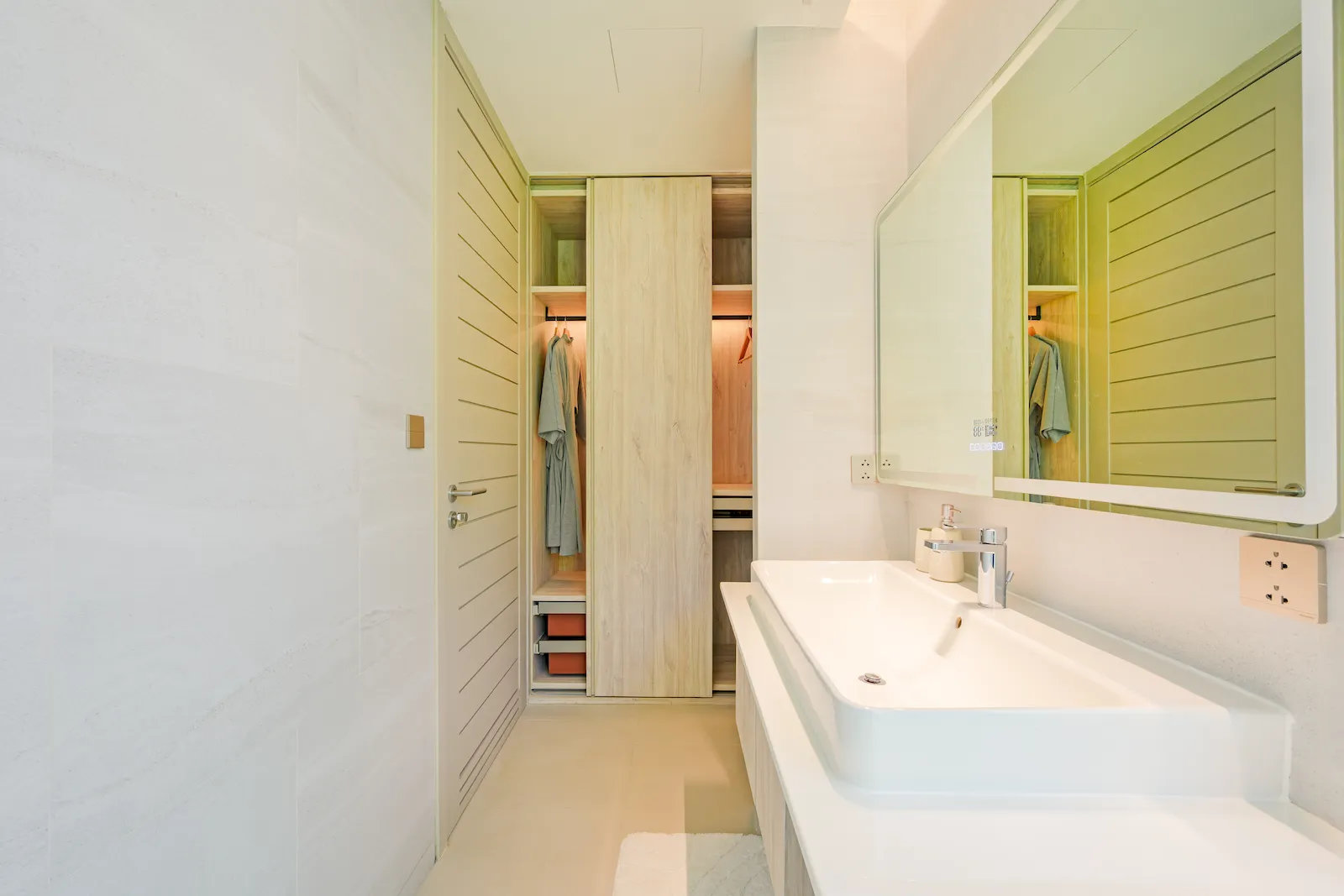 Each of the three bedrooms has been carefully designed to provide a private retreat within the home, offering generous proportions, natural light, and a calming atmosphere. The layout ensures clear separation between communal living areas and sleeping quarters, enhancing both privacy and functionality.