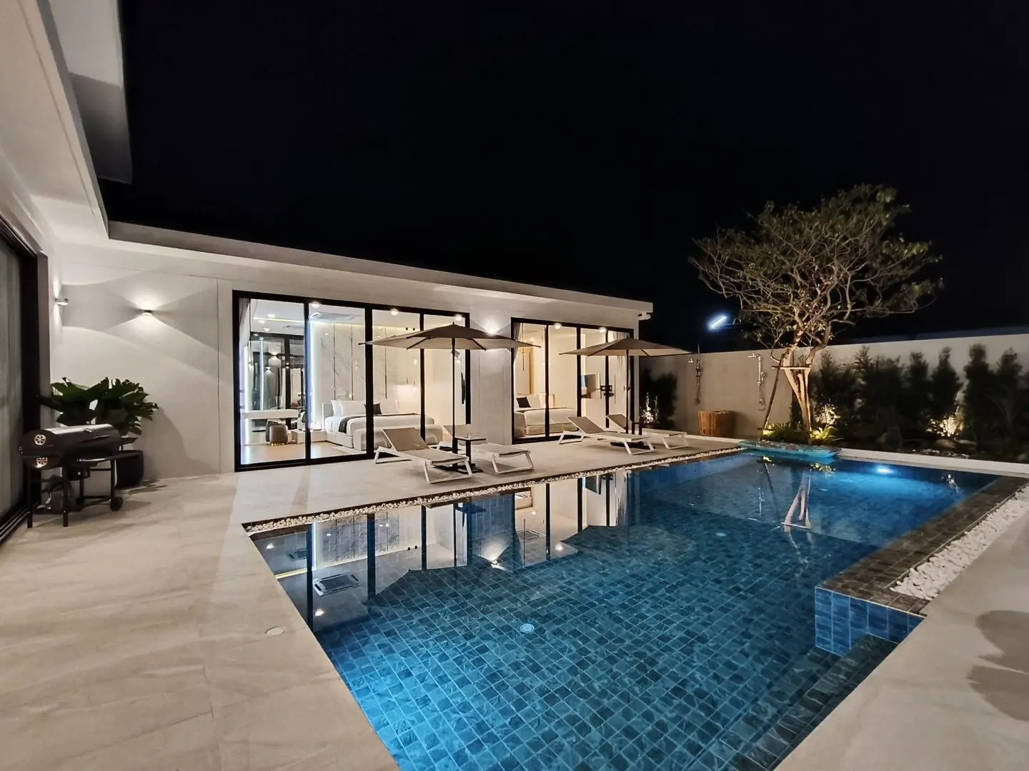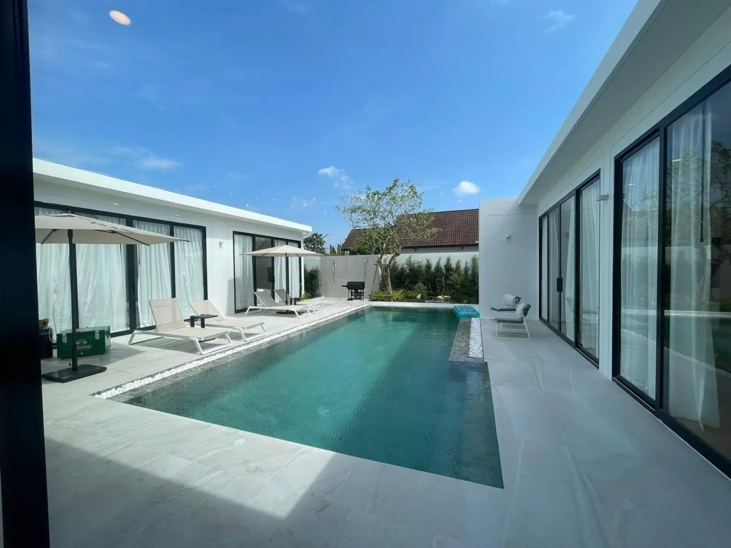 The villa’s fresh contemporary design, oversized living areas, and prime location support excellent