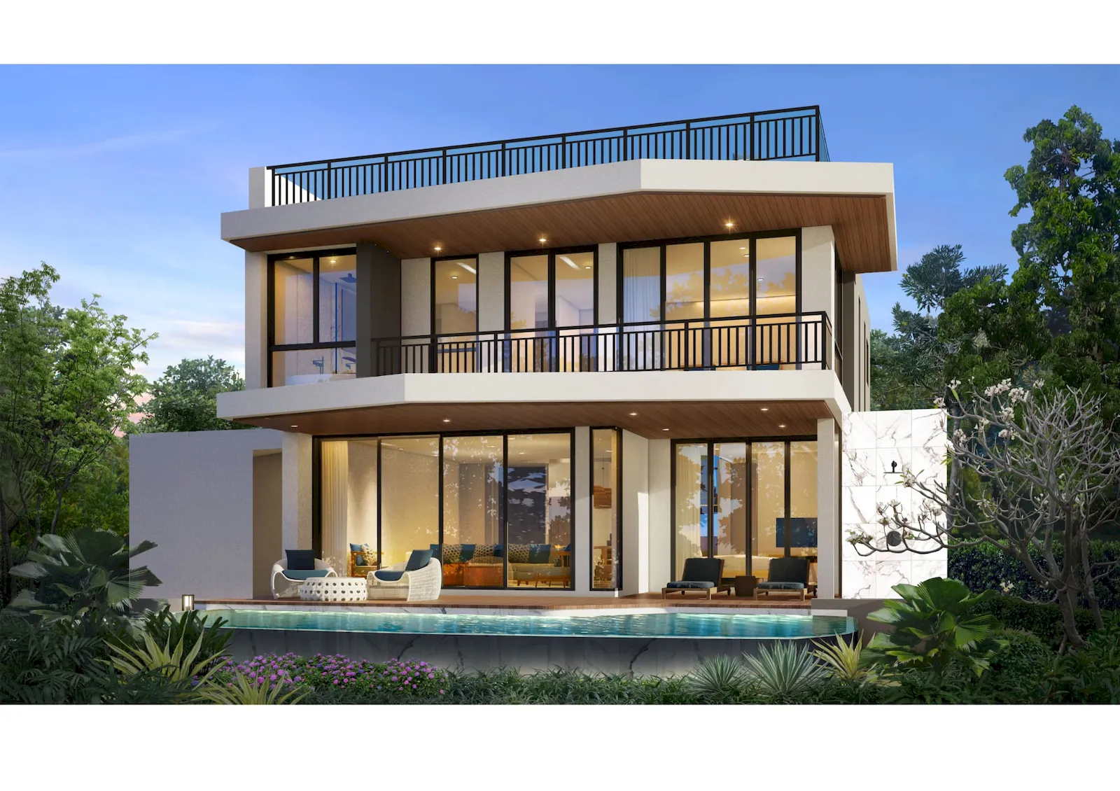 With carefully balanced proportions and high ceilings, the villas feature bright, open-plan living areas that flow toward the private pool and garden. Options for two or three bedrooms and three to four bathrooms allow flexibility for couples, families or rental use, while smart home integration and European finishes enhance day-to-day comfort.