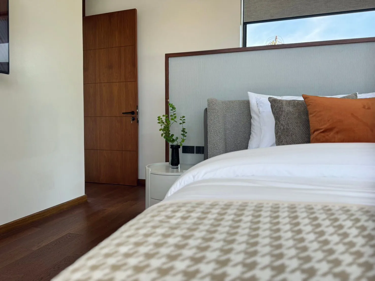 The villa includes four bedrooms and five bathrooms, framed by bright, airy living spaces that open toward the garden. A pavilion designed for BBQs and outdoor gatherings enhances the leisure experience, complemented by a landscaped garden and two private parking spaces. Luxury finishes and modern construction ensure long-term durability and an elevated residential atmosphere.