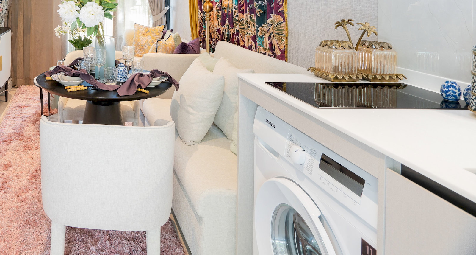 The interior concept emphasizes simplicity and livability, offering a refined yet practical coastal residence within a vibrant residential environment.