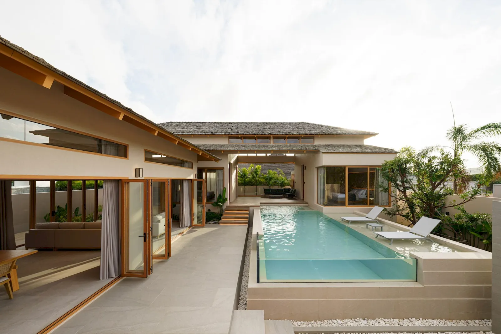 Set on a 775 sq.m. land plot, the villa features four bedrooms, five bathrooms, and a private pool. The floor plan can be customised by up to 30%, allowing adjustments to interior flow or expanded outdoor spaces such as an extended pool deck or larger landscaped garden. Premium materials and contemporary tropical detailing create a warm yet elevated living environment suitable for families, long-term residents, or holiday-home seekers.