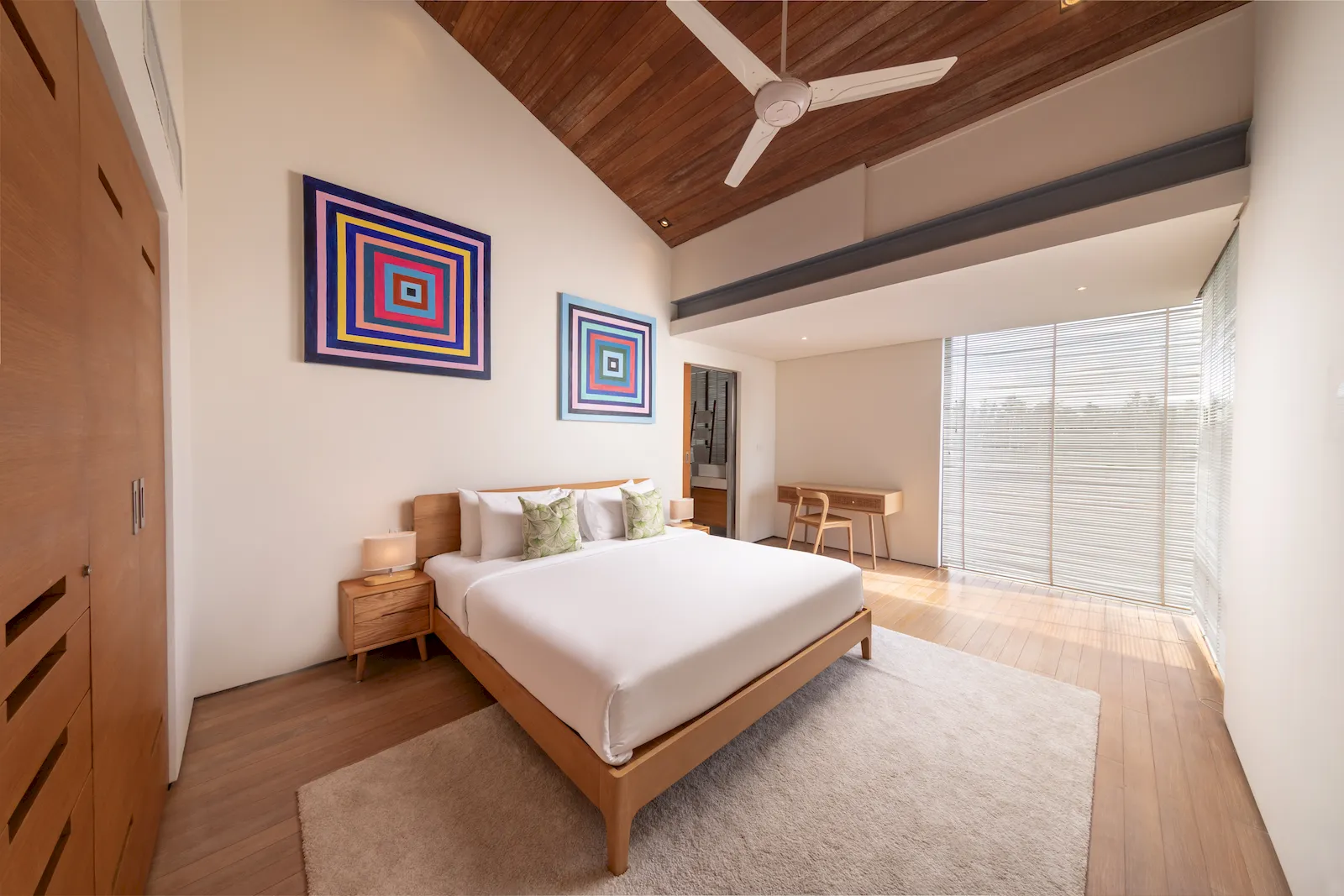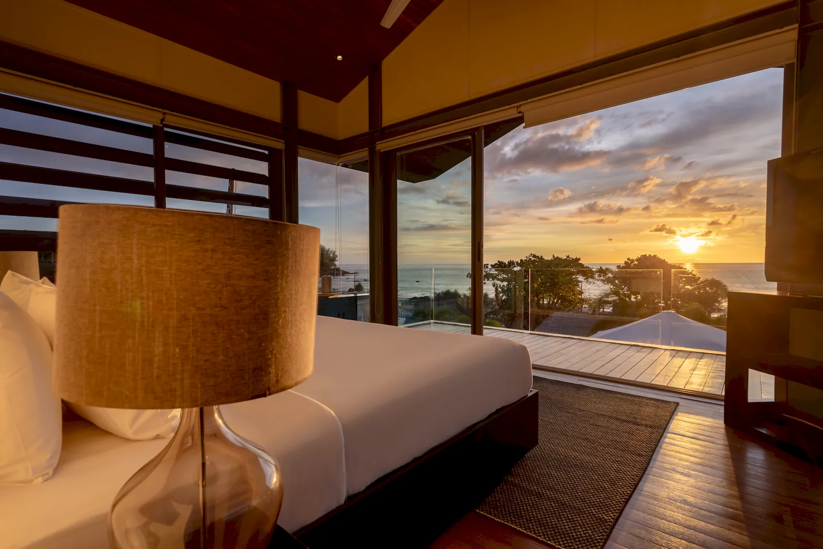 Created to maximise natural light and coastal breezes, this modern tropical villa features expansive picture windows, sleek lines, and living spaces that flow gracefully onto a sunlit terrace overlooking the sea. The 18-meter saltwater infinity pool forms the heart of the home’s outdoor experience, complemented by plush seating, shaded lounges, and panoramic vantage points for sunrise swims or sunset gatherings. Thoughtfully designed bedrooms with private balconies, flexible bedding configurations, and calming interior palettes provide comfort for families and groups, while open-plan dining and lounge areas add a relaxed yet elegant atmosphere.