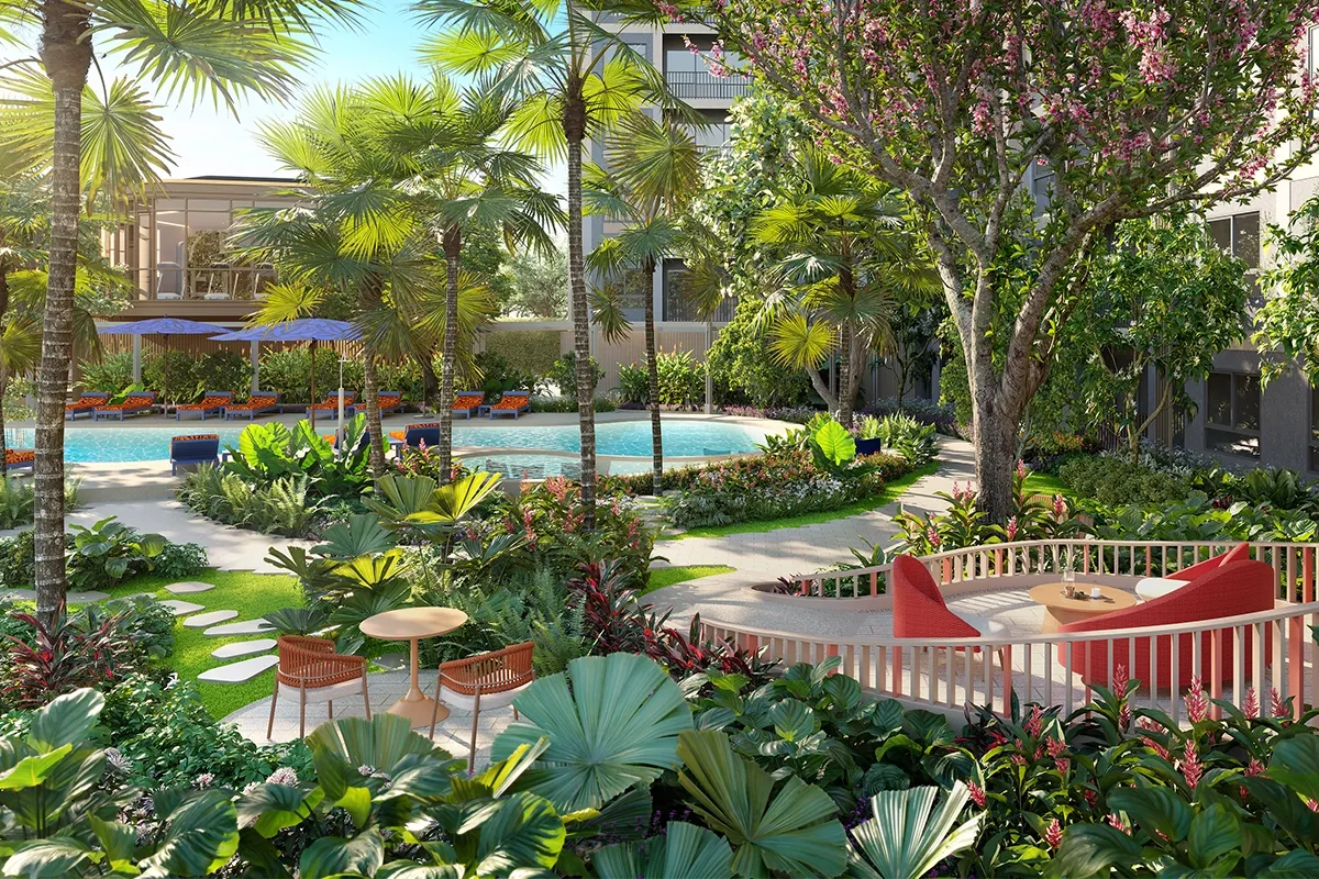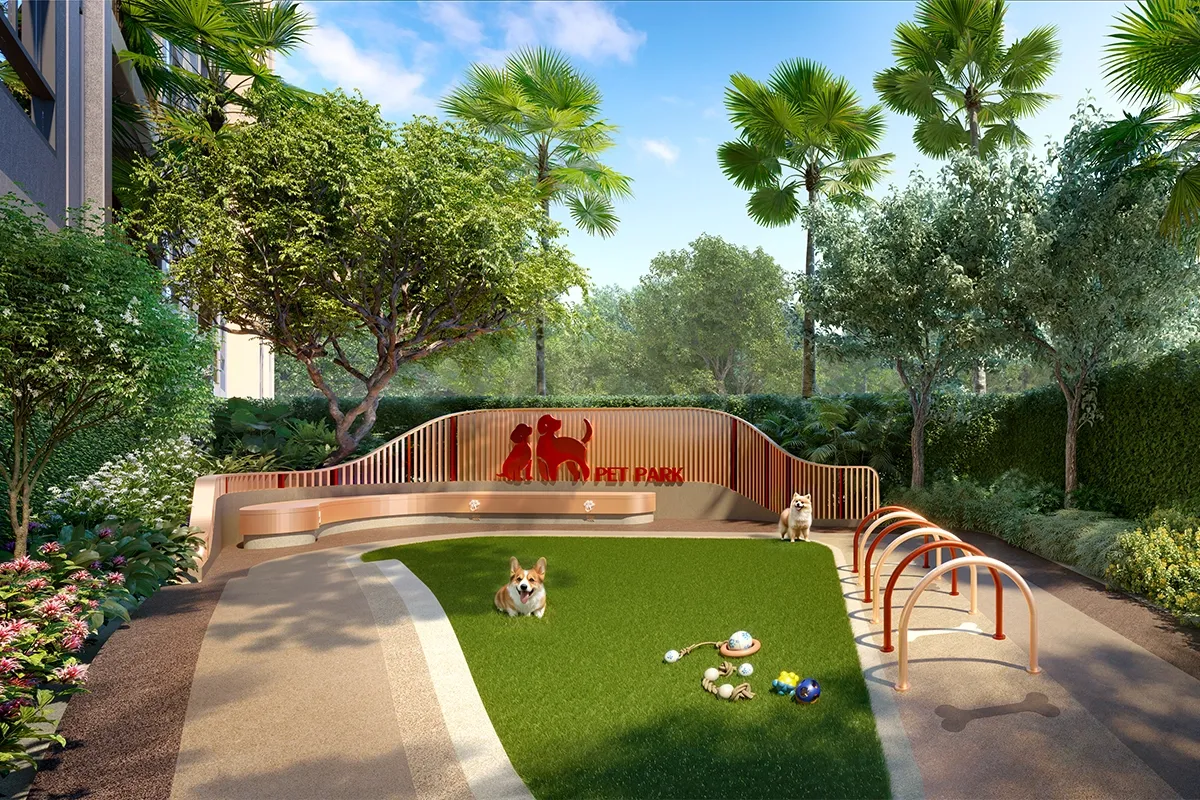 Residents benefit from a wide selection of curated amenities designed for comfort, wellbeing, and community living. Highlights include a landscaped garden, swimming pool with spa zone, fully equipped gym, outdoor fitness area, meeting facilities, and dedicated pet-friendly spaces. Secure underground parking and 24-hour monitored entry ensure privacy and peace of mind for homeowners and long-stay guests.