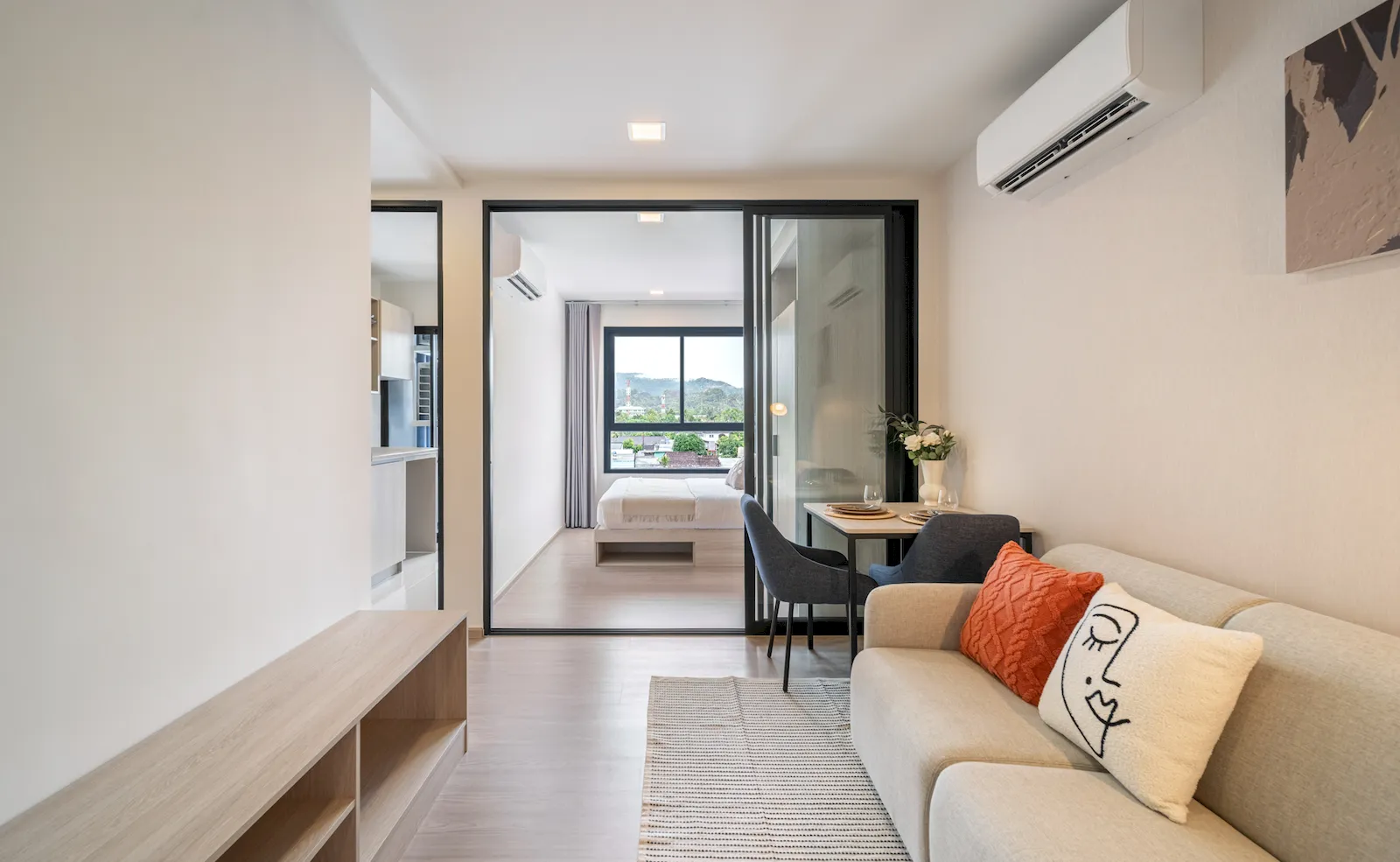 The Kathu district offers exceptional accessibility for city living. Central Festival, Central Floresta, and nearby lifestyle hubs are within minutes, while HeadStart International School sits just a short drive away. Patong Beach is approximately fifteen minutes across the hill, providing quick access to leisure and entertainment. Hospitals, dining, and everyday amenities are all easily reached from this central address.