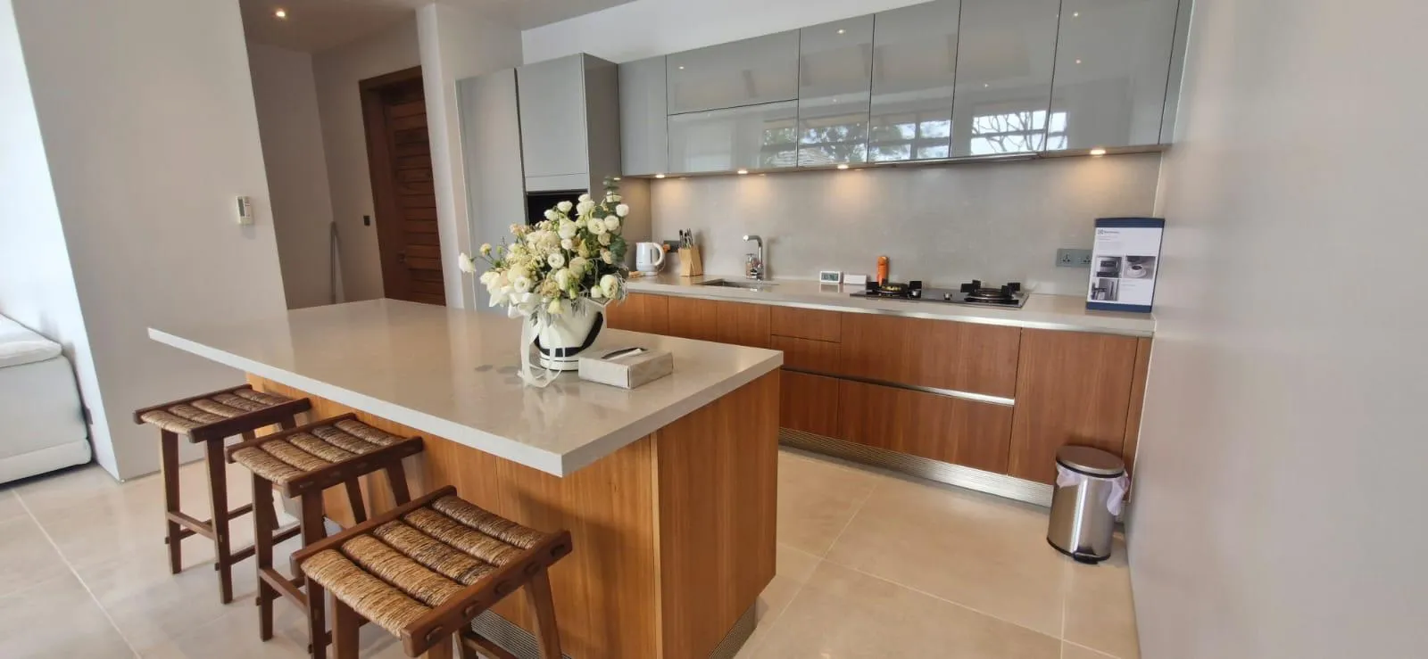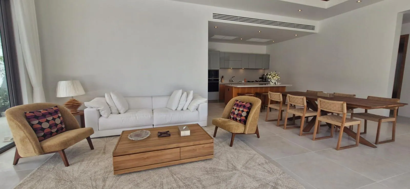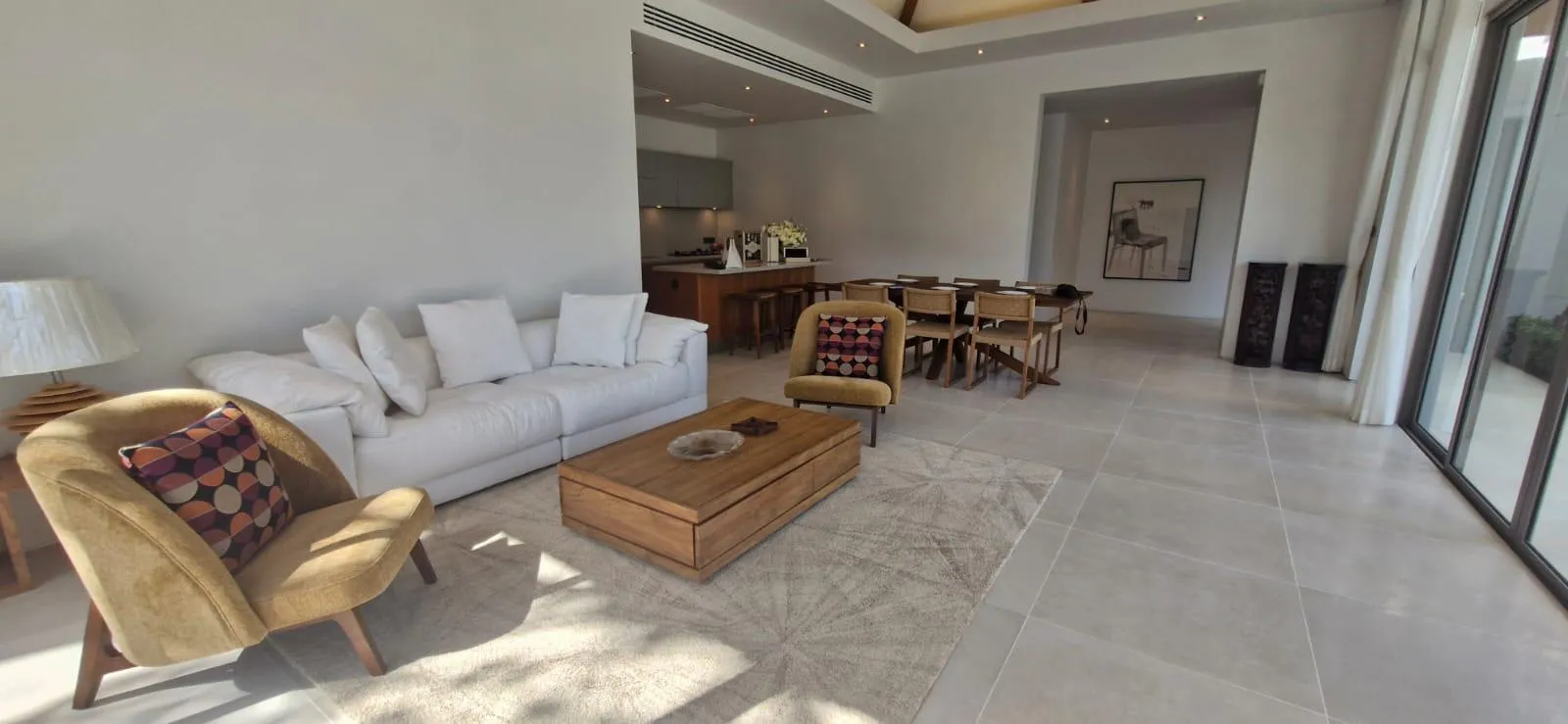 The villa features an airy open-plan living space, a modern kitchen, three en-suite bedrooms, and seamless connections to outdoor lounging and pool areas. The thoughtful layout enhances comfort, privacy, and modern tropical living.
