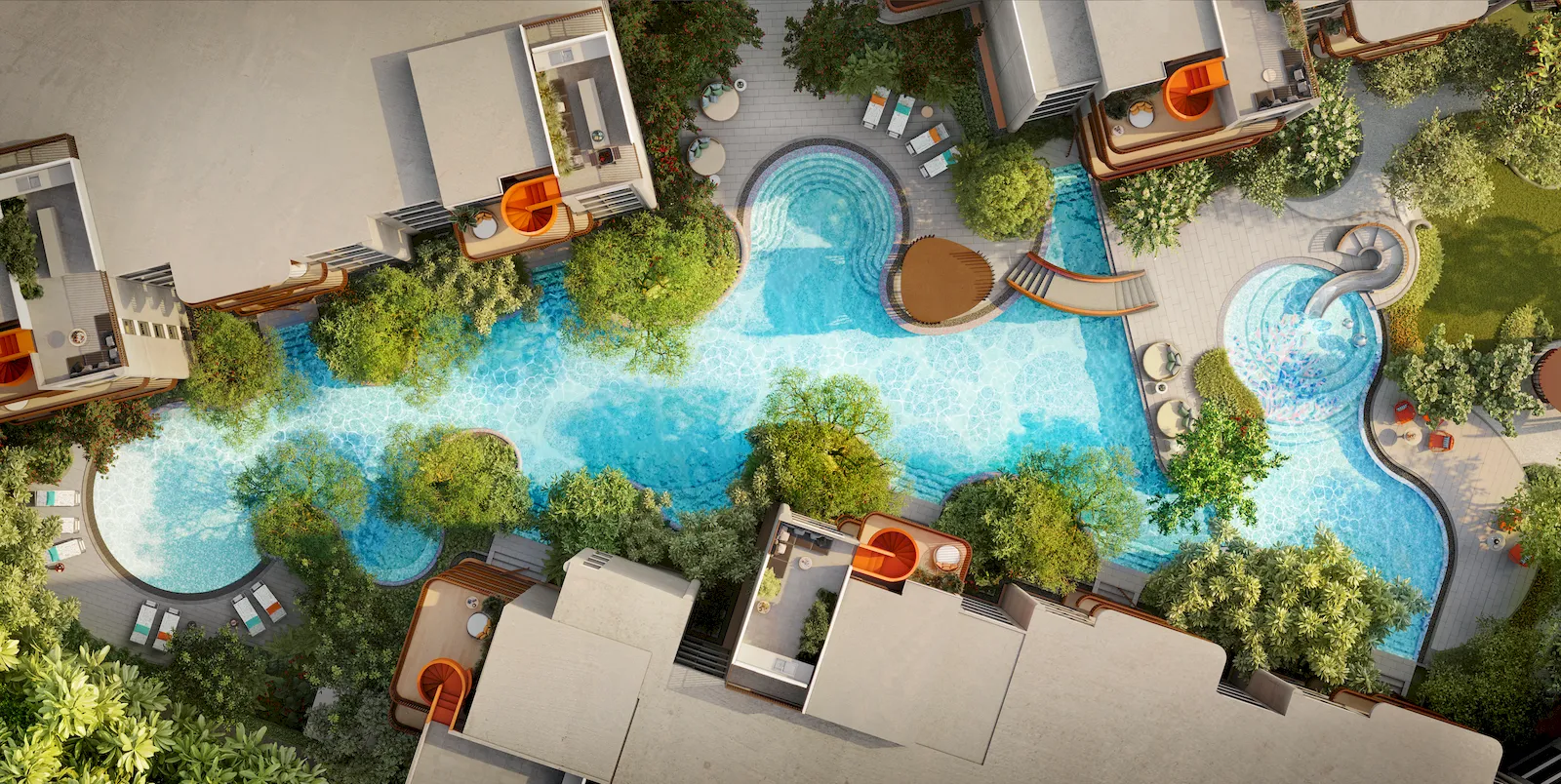 The development follows a boutique concept with a collection of mid-rise buildings that blend into their tropical setting. Interiors are shaped by clean lines, soft textures, and a functional layout that encourages seamless day-to-day living. Thoughtful design choices, including ample glazing and ventilation, create a bright and comfortable retreat.