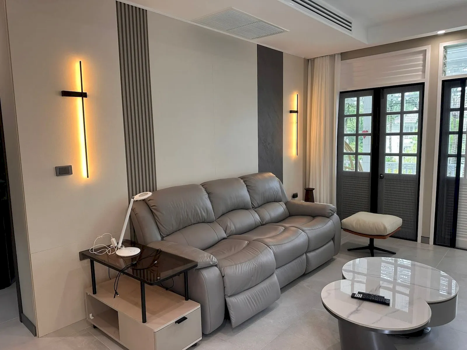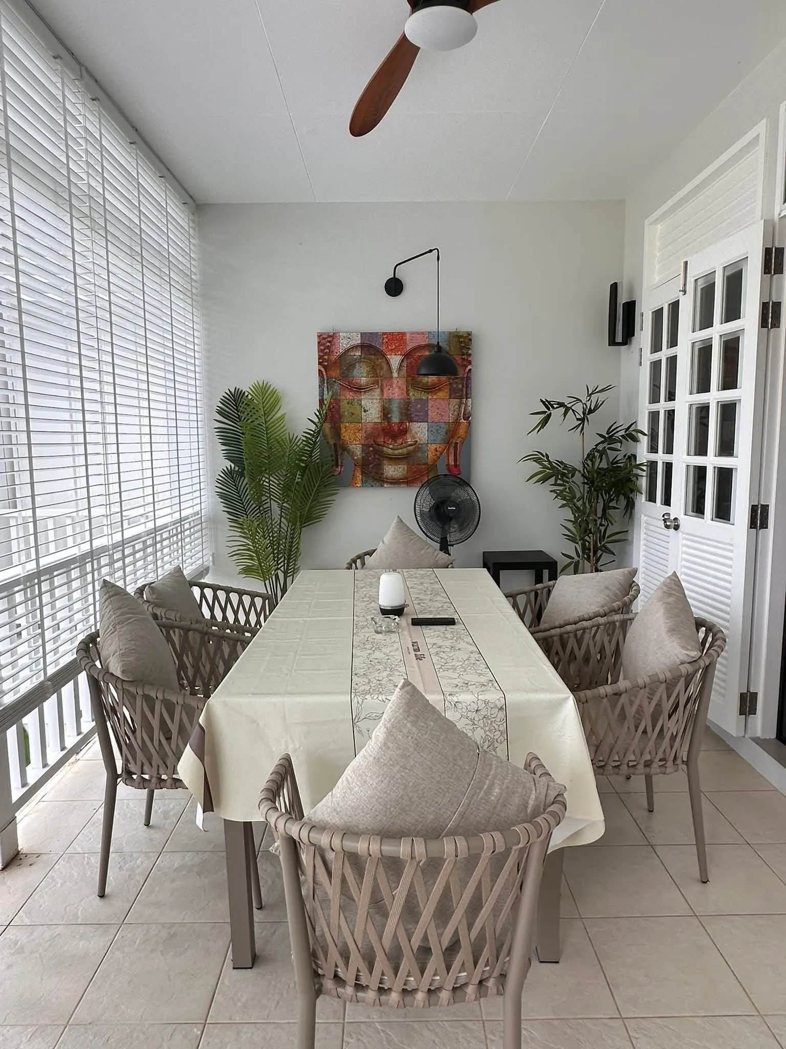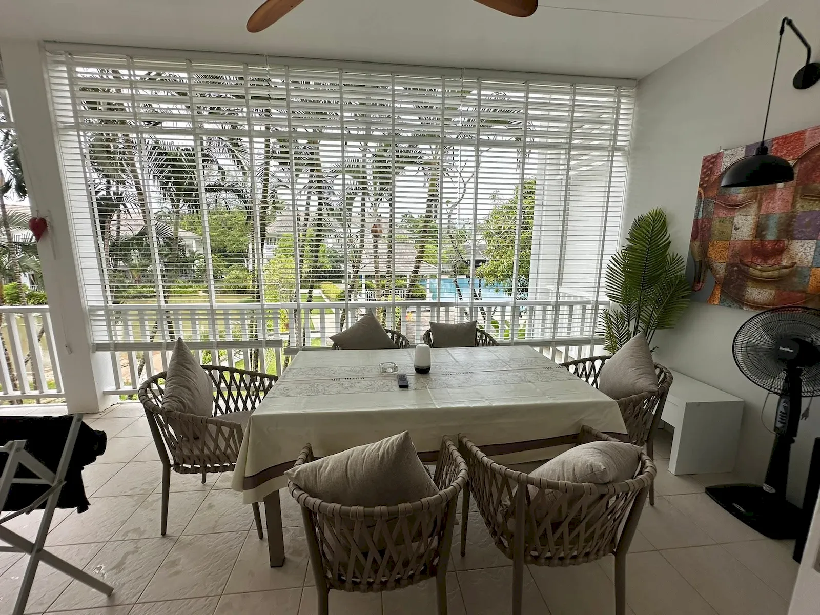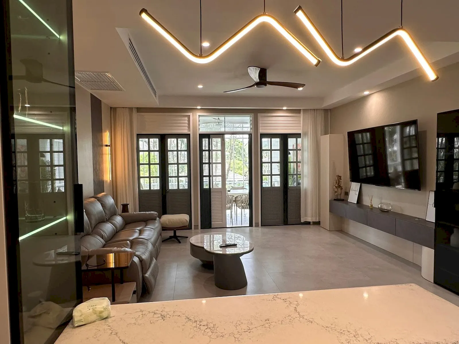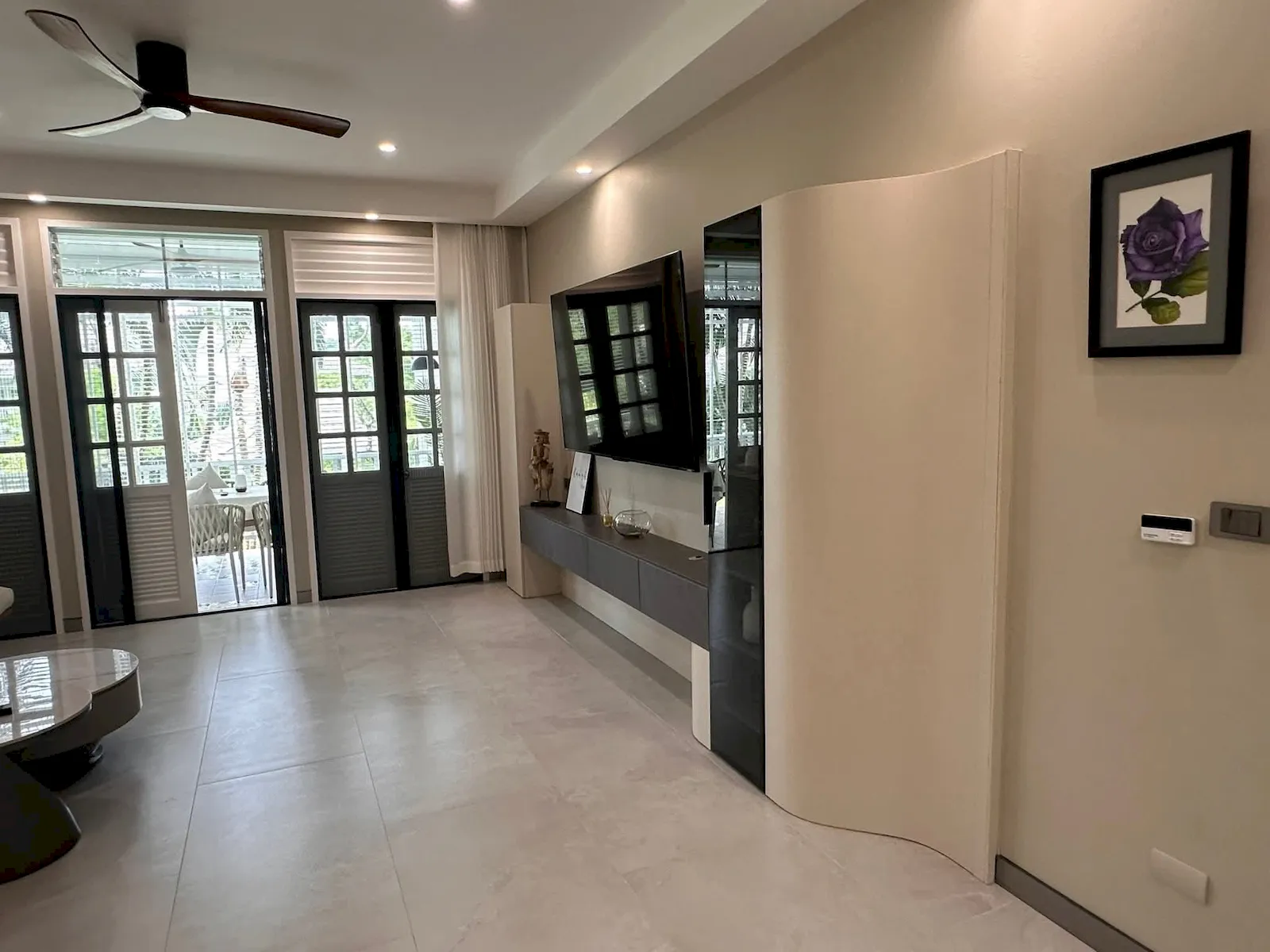 Fully renovated and thoughtfully furnished, the residence showcases modern tropical design with bright open spaces and warm, inviting interiors. Large sliding doors connect the living area to a spacious 30 sq.m. veranda, creating a seamless blend of indoor–outdoor living. The 117 sq.m. internal layout includes a generous living room, a fully equipped kitchen, and two well-appointed bedrooms — one with a double bed and ensuite bathroom, the other with twin beds — making it ideal for relaxed long-stay living.