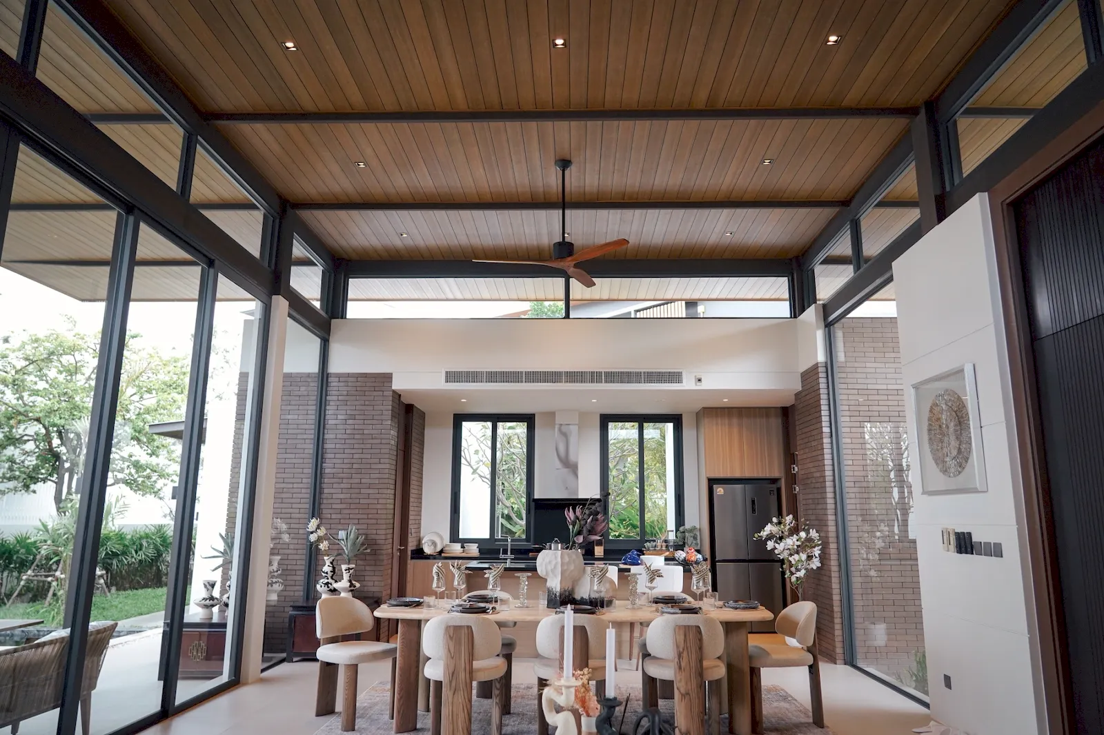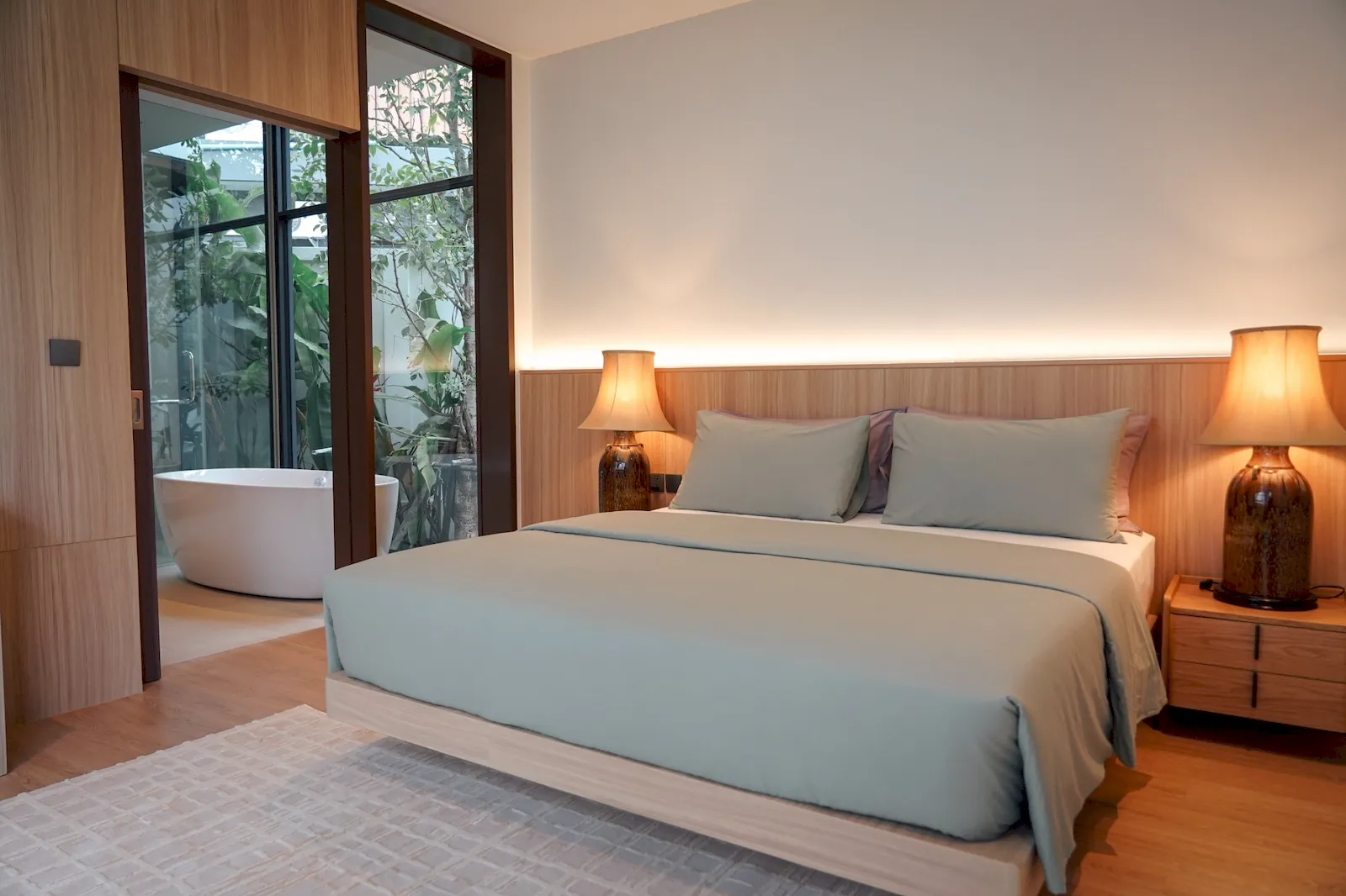 Designed with a modern tropical aesthetic, the villa features a spacious open-plan living and dining area, complemented by high ceilings and large sliding doors that create effortless indoor–outdoor flow. The fully equipped kitchen is fitted with high-end appliances, ideal for both daily living and entertaining. Four bedrooms, each with ensuite bathrooms, provide privacy and comfort, while the outdoor pool and landscaped garden complete the home’s serene atmosphere.