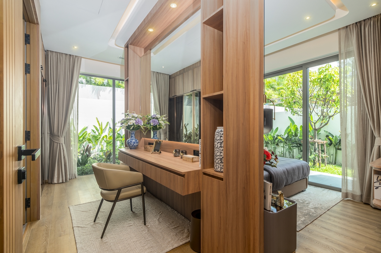 The interior centres around a large open-plan living and dining area overlooking the pool, complemented by a fully equipped Western kitchen. All four bedrooms are generously proportioned, each featuring a walk-in closet and an en-suite bathroom. Premium materials and contemporary finishes enhance the villa’s understated sense of luxury, while functional spaces have been thoughtfully integrated for ease of daily living.