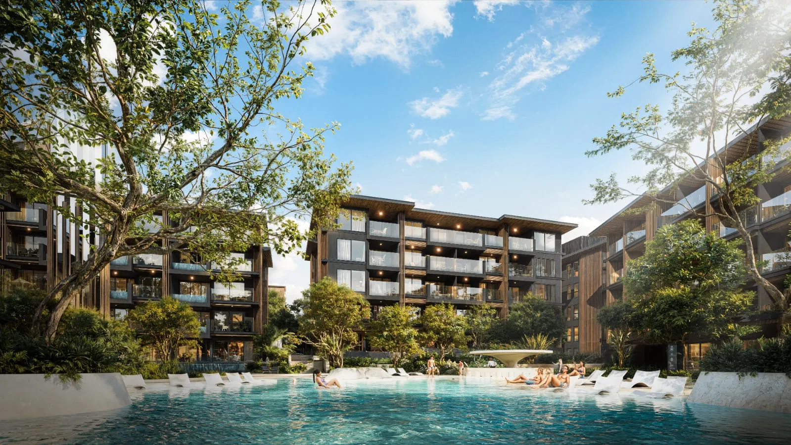 The development features one- and two-bedroom layouts, each fully furnished with high-quality finishes. Interiors pair clean architectural lines with soft natural materials, creating an effortless connection between indoor and outdoor living. Residents enjoy access to resort-inspired facilities including an infinity pool, rooftop lounges, fitness amenities, and co-working areas, all set within a professionally managed and secure environment.
