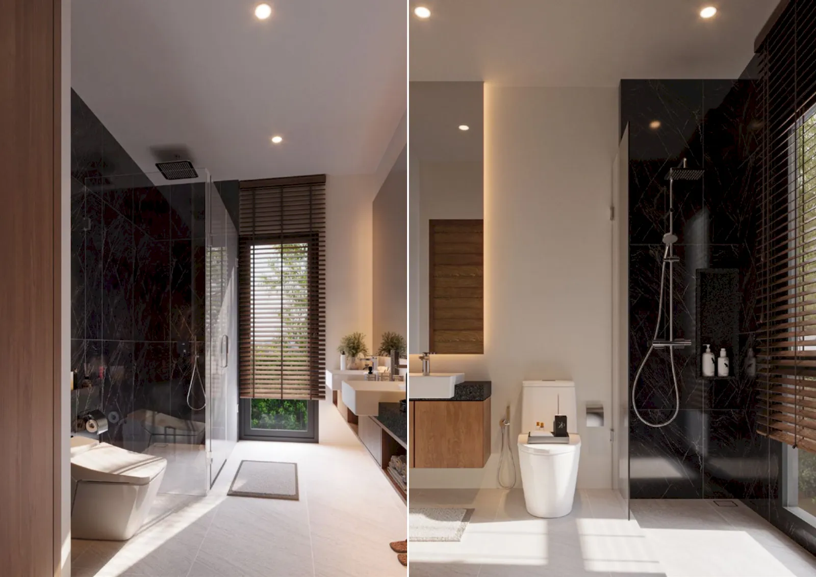 The villas prioritise comfort and light, featuring high ceilings, large sliding glass doors, and a seamless connection between indoor and outdoor areas. Private pools of up to eleven metres provide a refreshing focal point, while landscaped gardens create a calming natural backdrop. Optional furniture packages allow buyers to personalise interiors with ease.
