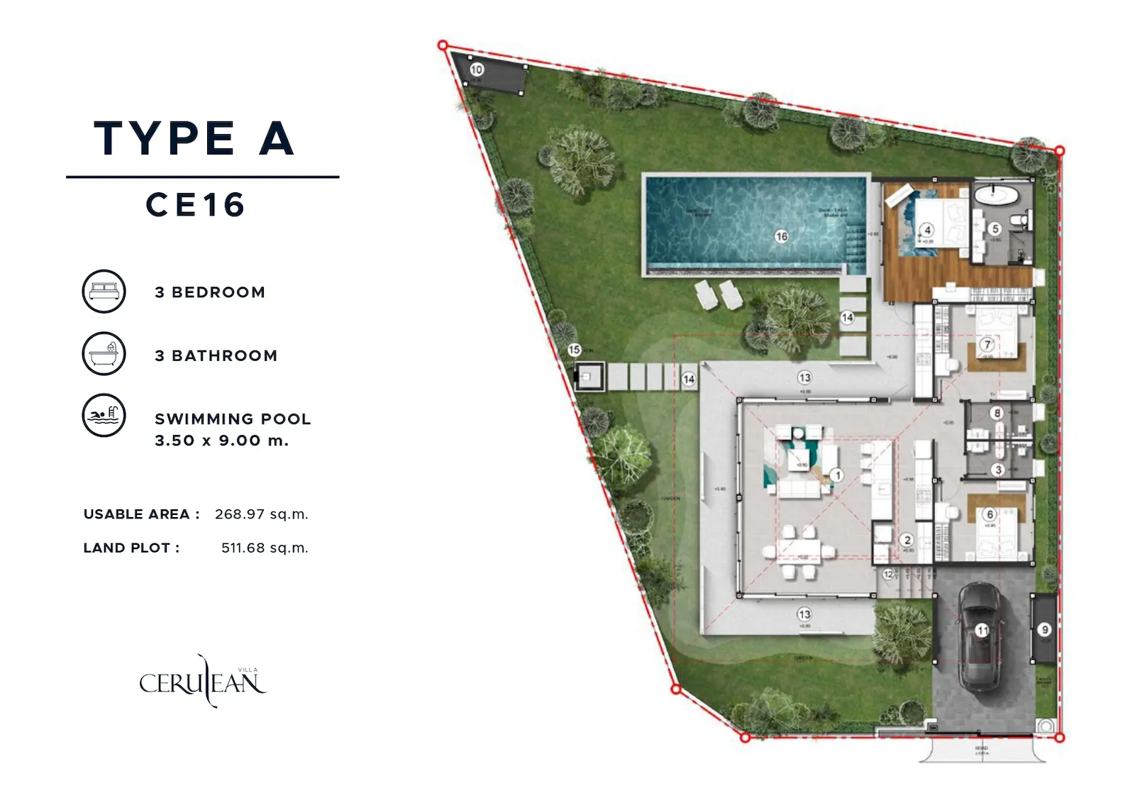 Designed for relaxed coastal living, each villa features a generous layout with three ensuite bedrooms, a private swimming pool, open-plan living spaces, and a landscaped tropical garden. Land plots range from 423 to 737 square metres, offering ample outdoor space ideal for families, long-term residents, or those seeking a tranquil holiday retreat.